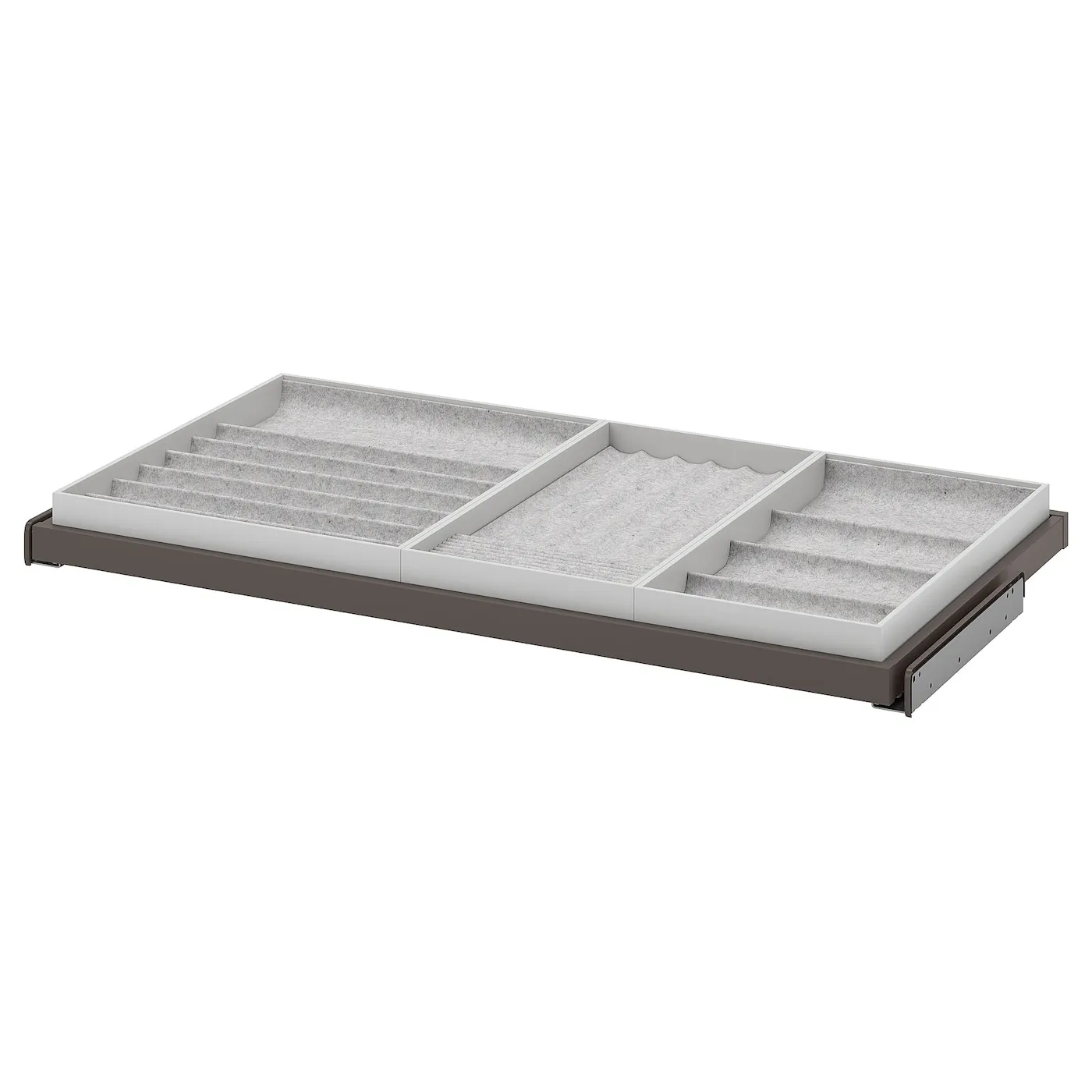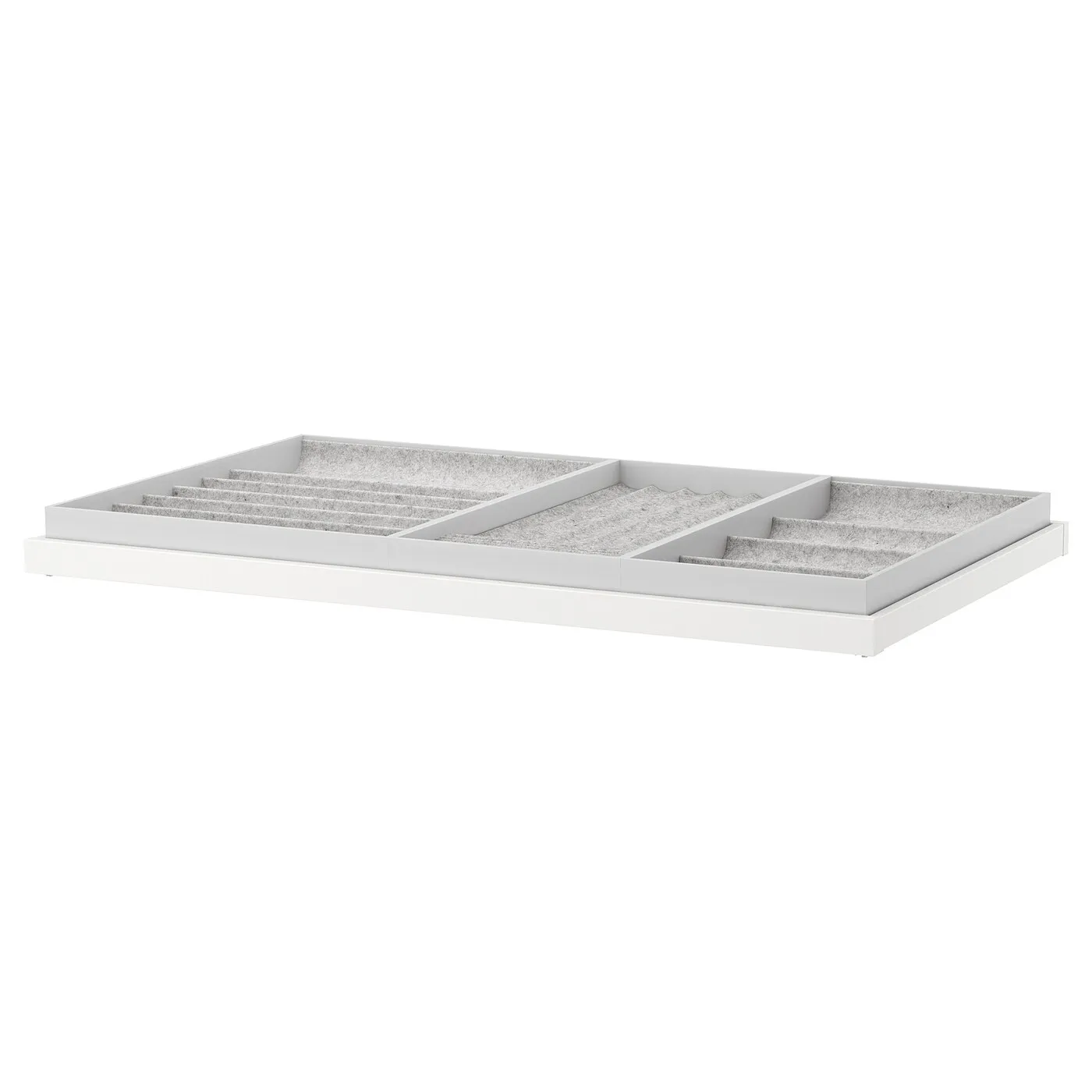 Можно дополнить стеклянной полкой KOMPLEMENT, чтобы содержимое лотка было видно сверху.
