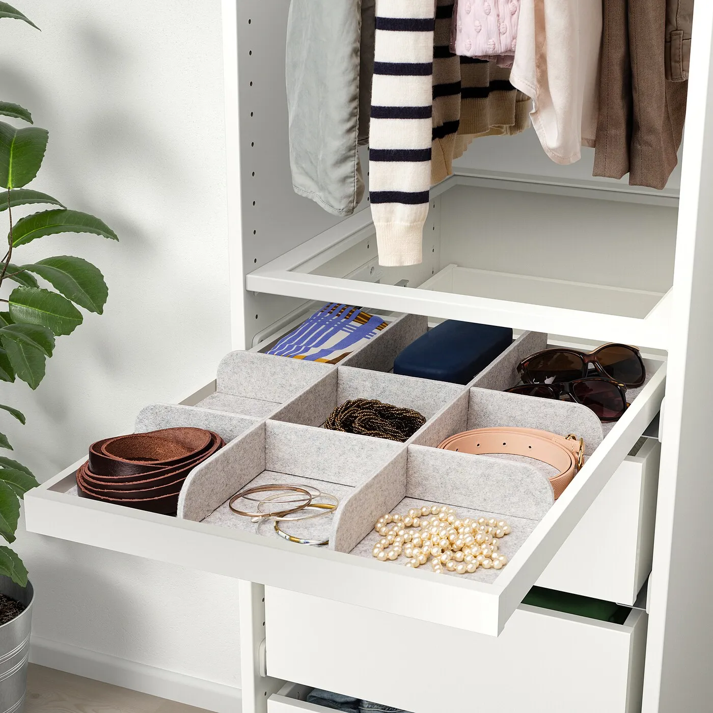 Разделитель поможет вам организовать хранение мелочей, таких как шарфы, ремни и галстуки, и быстро их находить.
