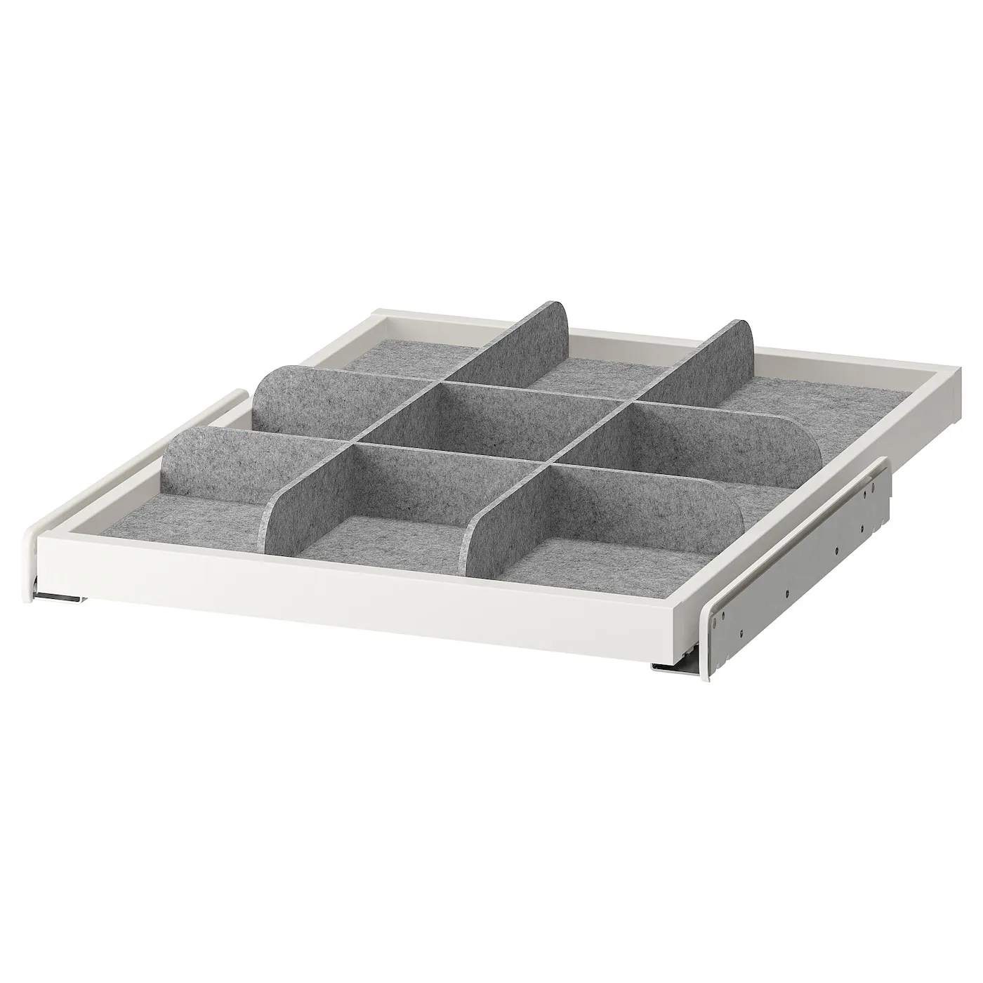 Может быть дополнено стеклянной полкой KOMPLEMENT, чтобы содержимое лотка было видно сверху.