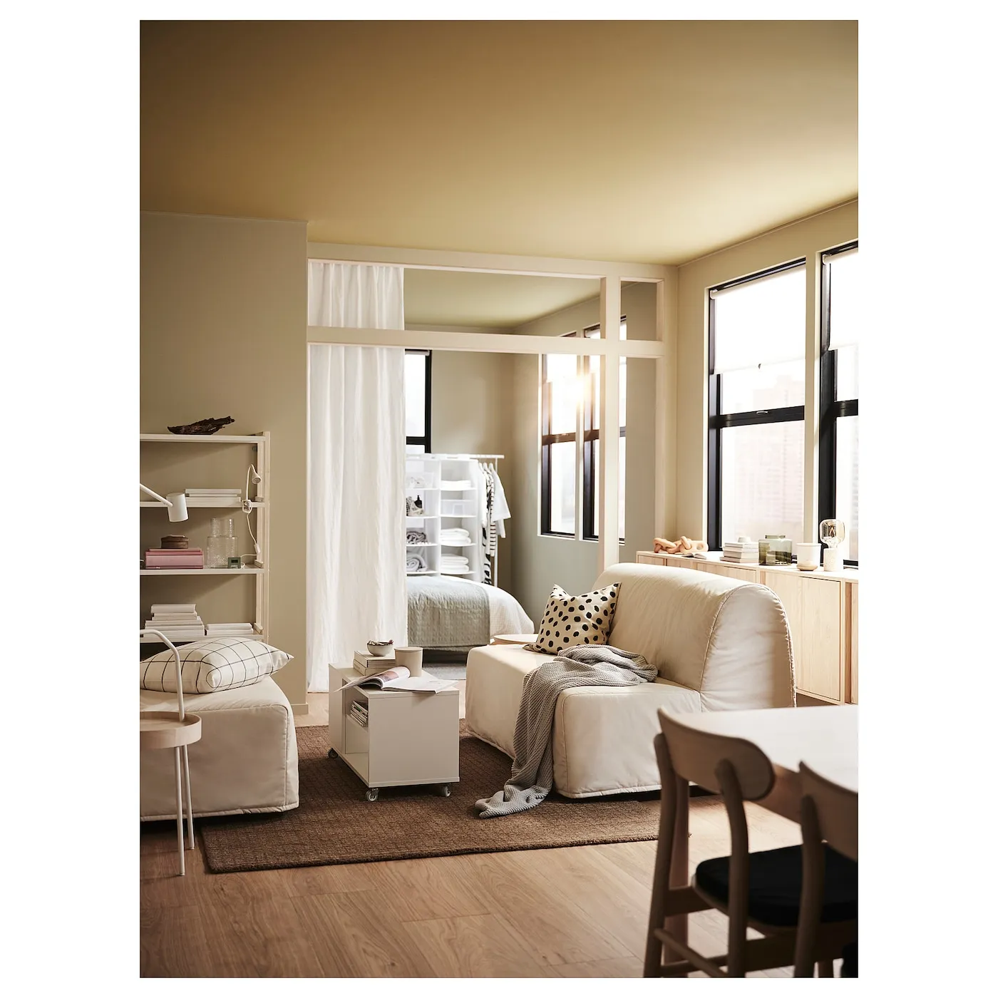 Обивка Ransta изготовлена из гладкой хлопчатобумажной ткани нейтрального цвета, которая подходит для многих интерьеров.
