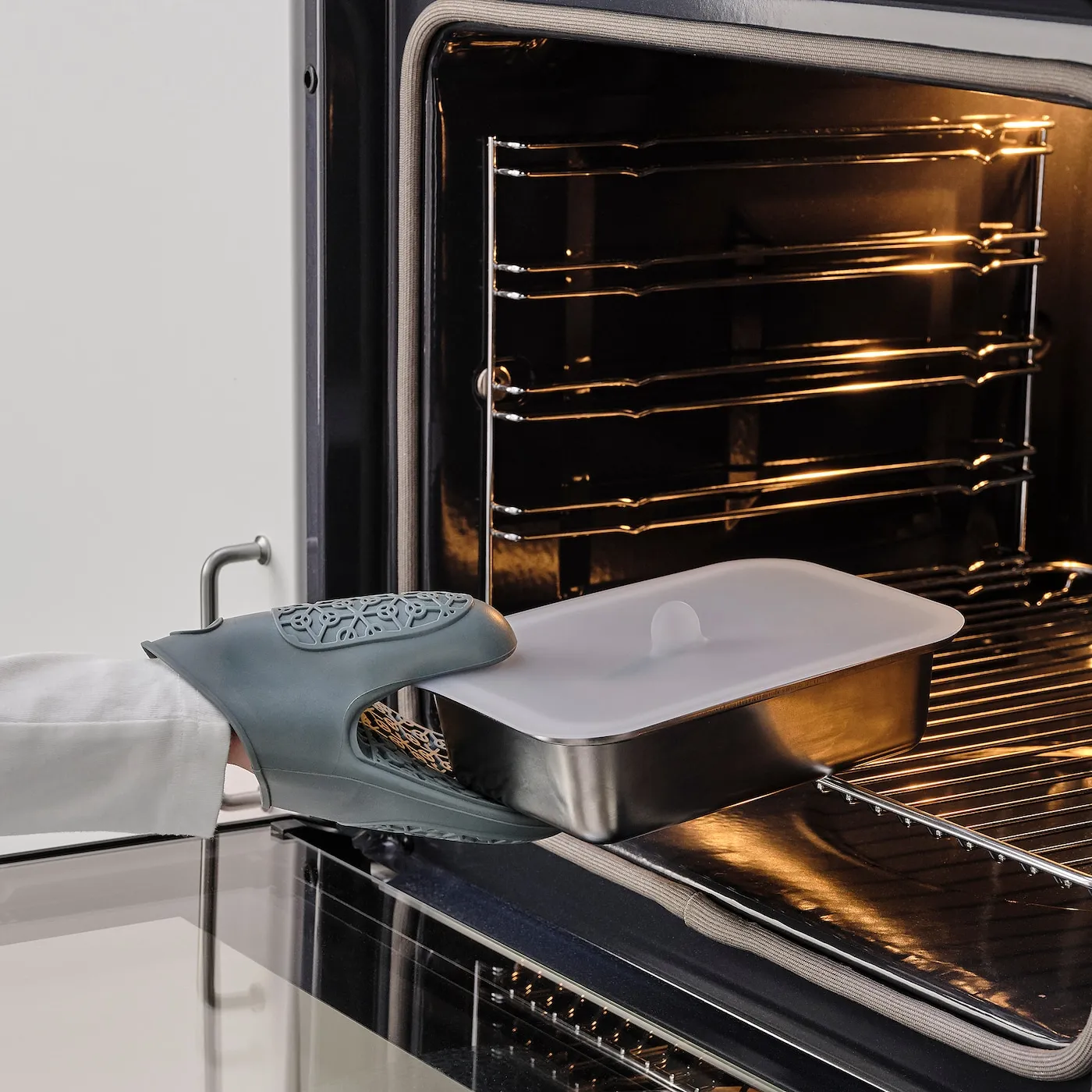 Крышку можно использовать для защиты от брызг в духовке и микроволновке.