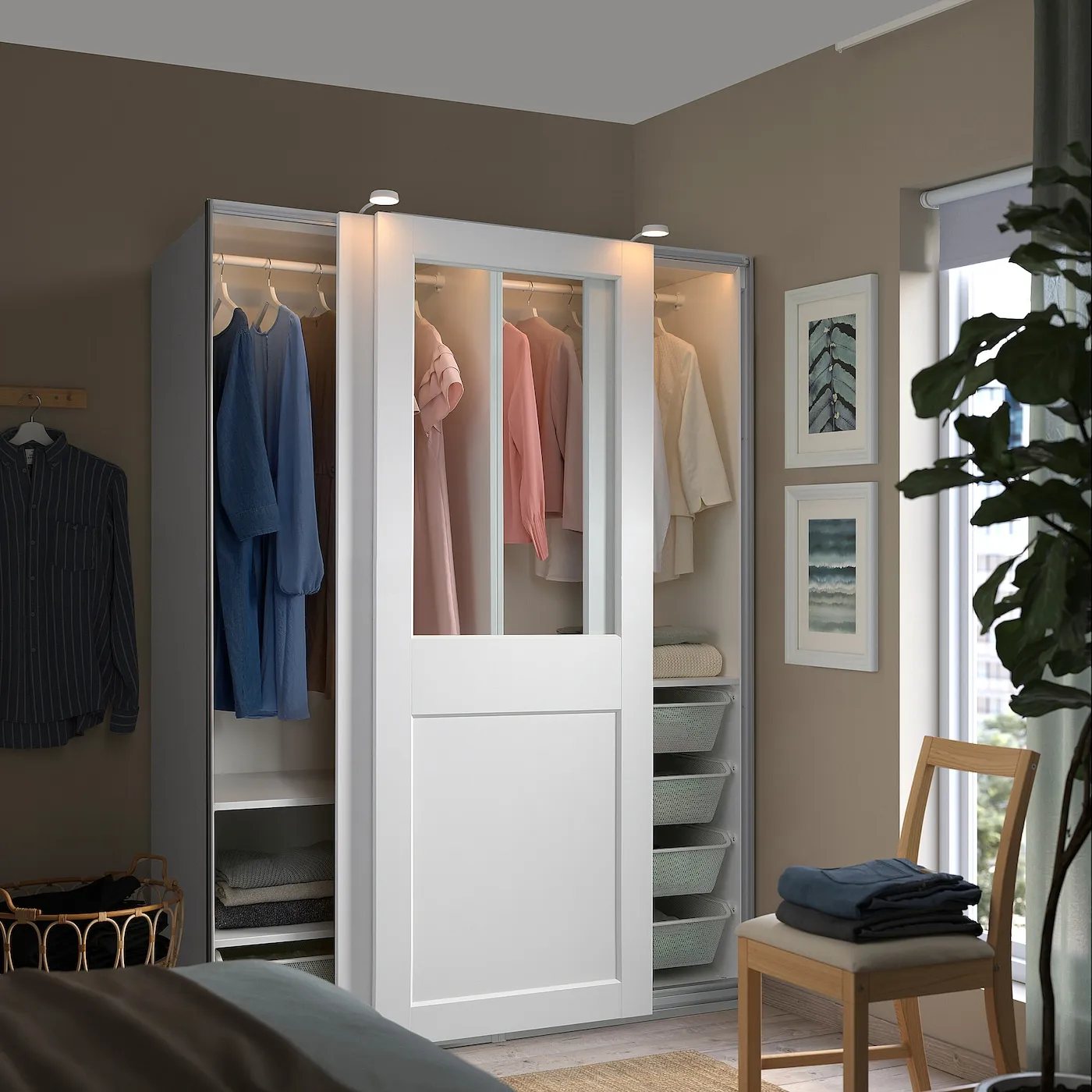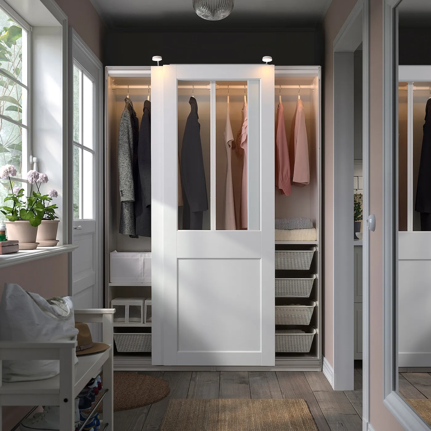 Зачем скрывать одежду, когда ее можно выставить напоказ? Этот гардероб с раздвижными дверцами GRIMO имеет стеклянные верхние панели, которые подчеркивают красоту ваших выглаженных рубашек или ярких платьев.