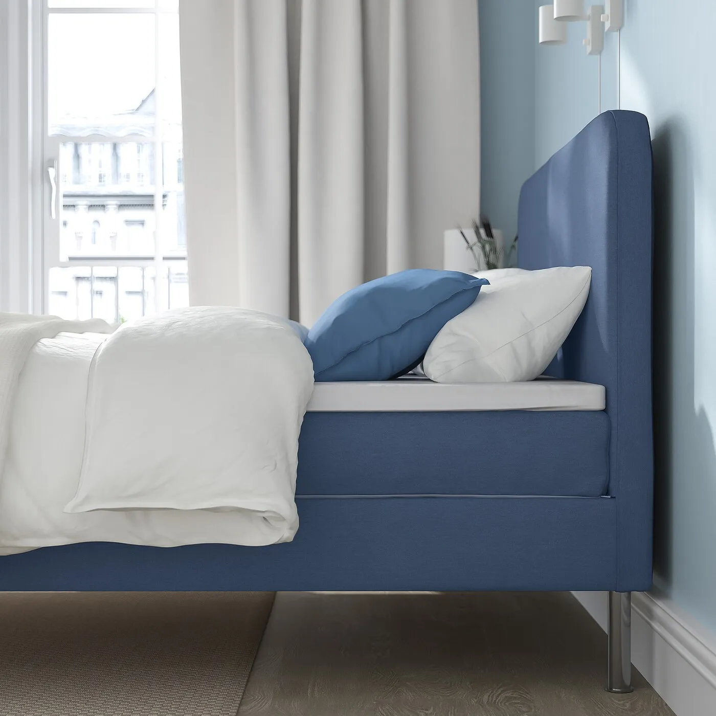 Диван-кровать BLÅFJÄLLET оснащен мягким изголовьем, нежной обивкой и удобным матрасом с карманными пружинами. Элегантный и уютный дизайн подойдет для любой спальни, а чехлы на каркасе легко стираются в машине.