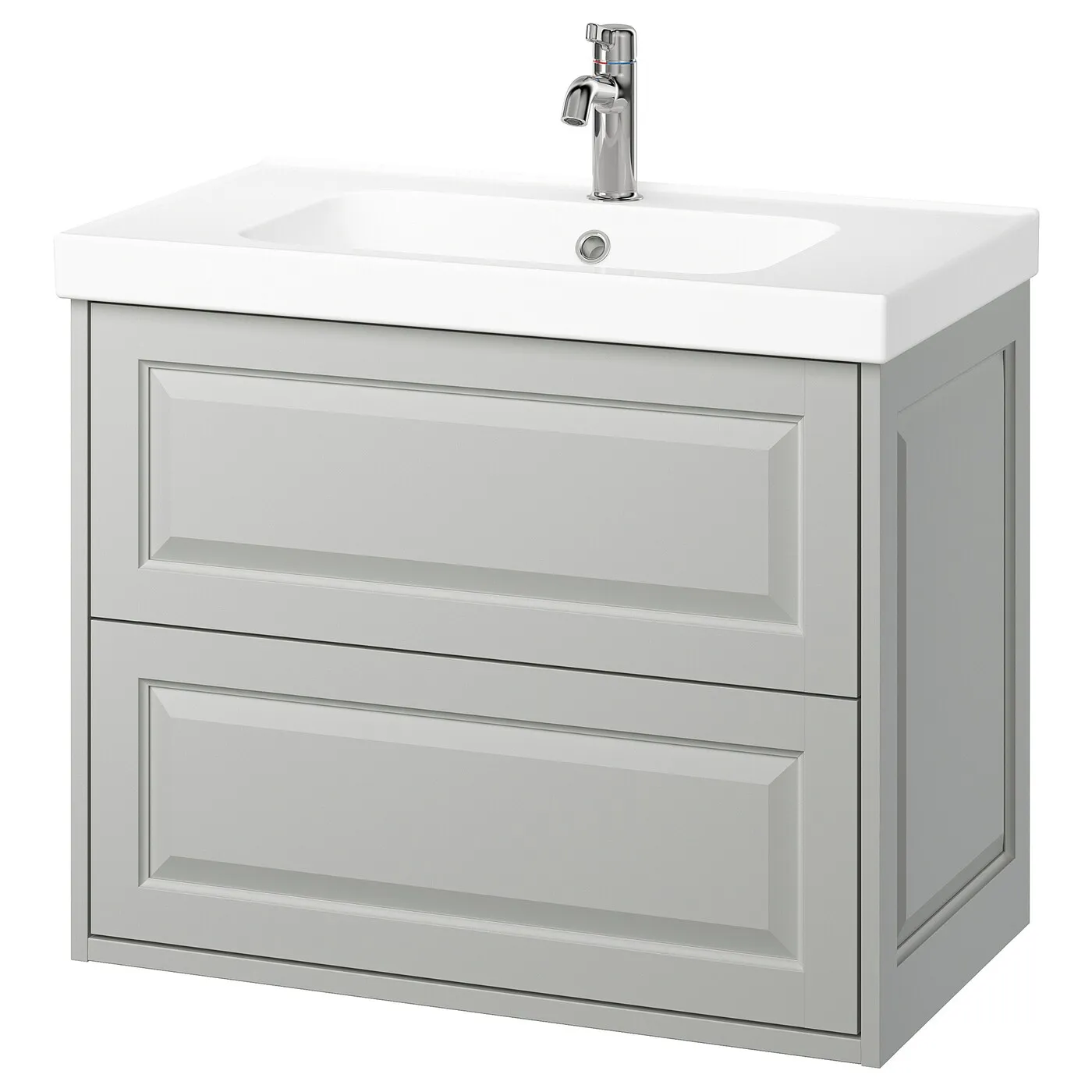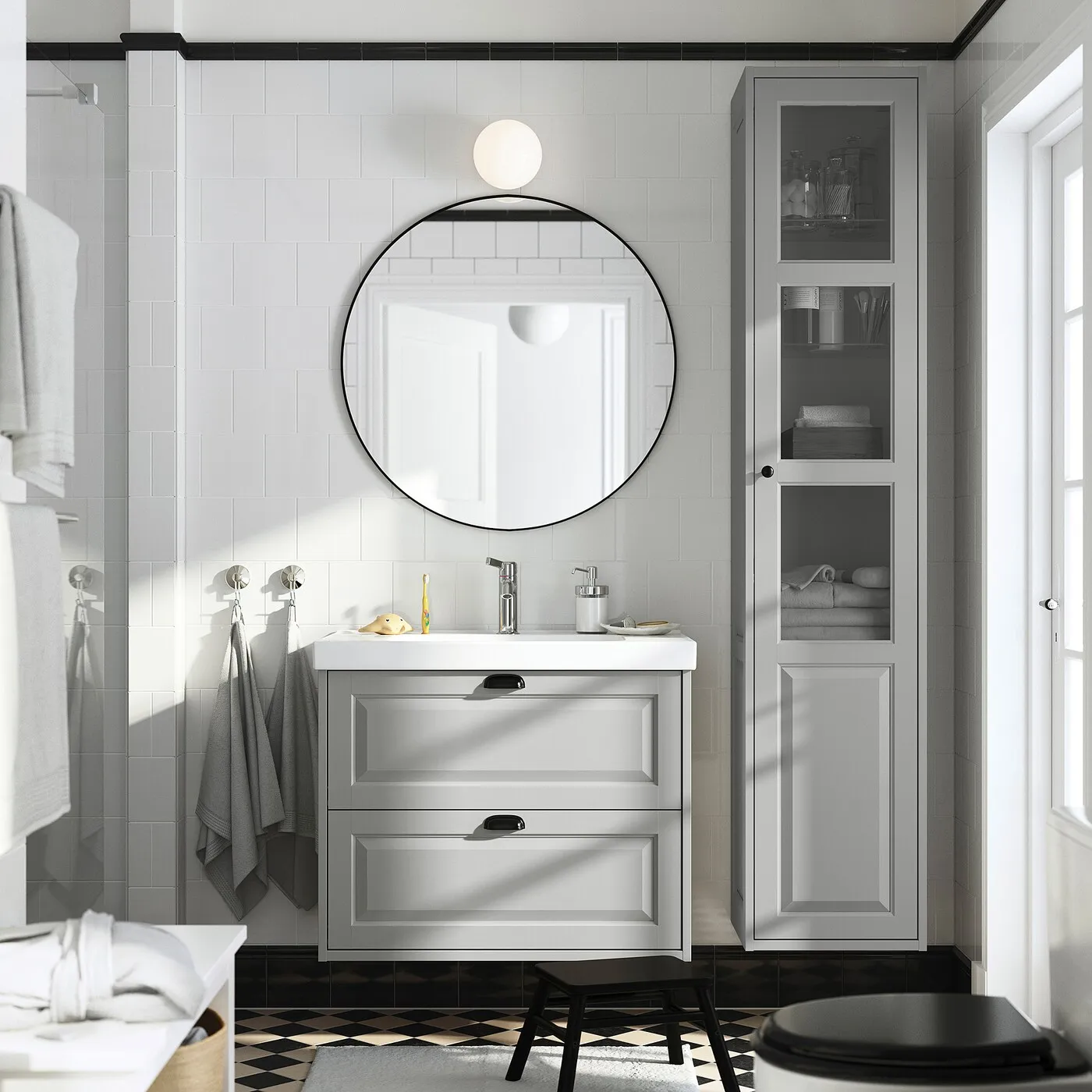 Мебель для ванной TÄNNFORSEN воплощает классическую элегантность с фасками, придающими изделию мастерски выполненный вид. Этот комплект оснащен двумя просторными ящиками и местом на раковине для зубных щеток и мыла.