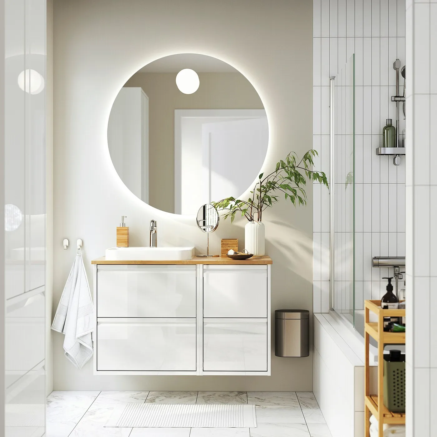 Совместите с другими шкафами из серии ÄNGSJÖN, чтобы создать гармоничное решение для ванной, подходящее вам по пространству и потребностям.