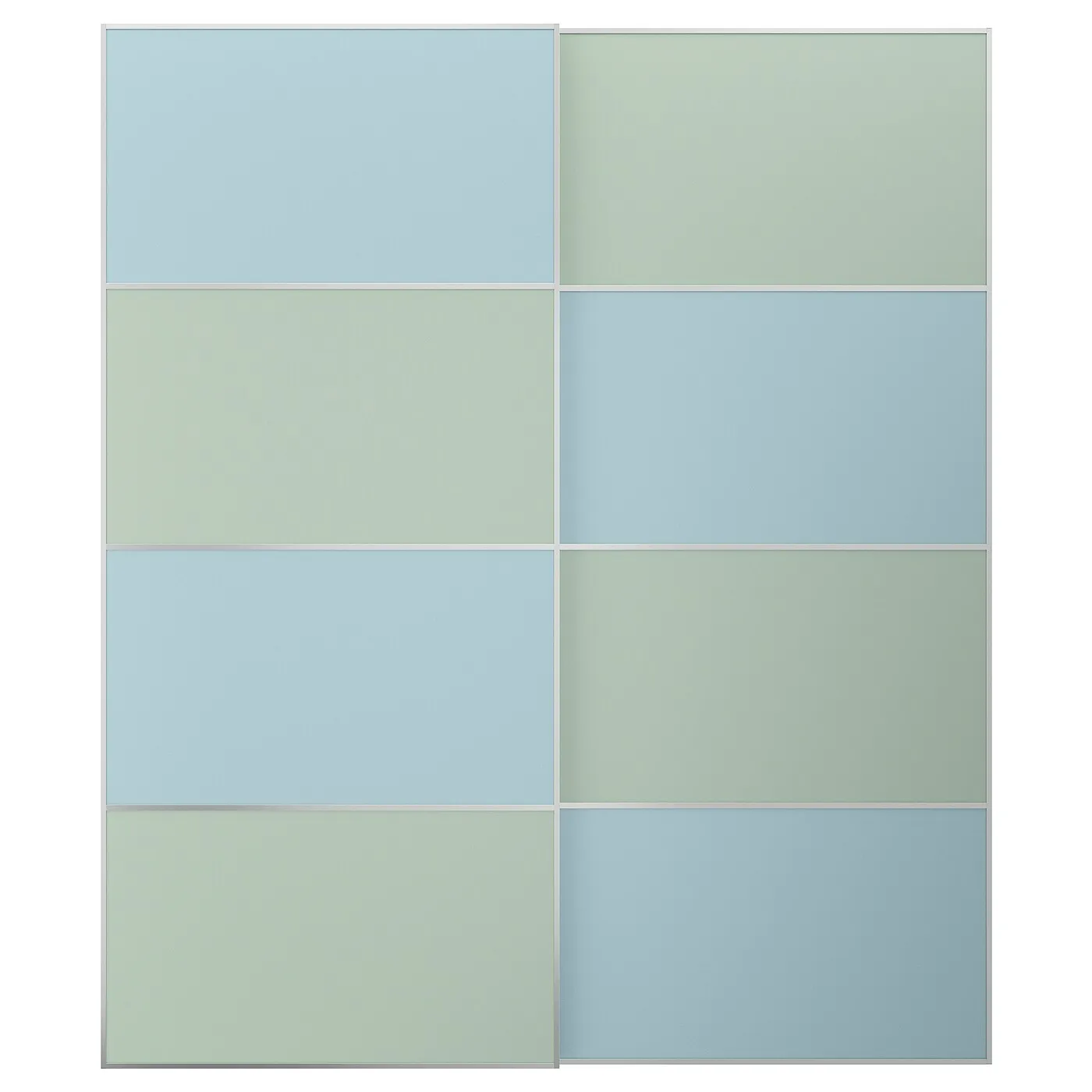 MEHAMN, Пара раздвижных дверей, алюминиевые, двусторонние/светло-голубые светло-зеленые, 200x236 см