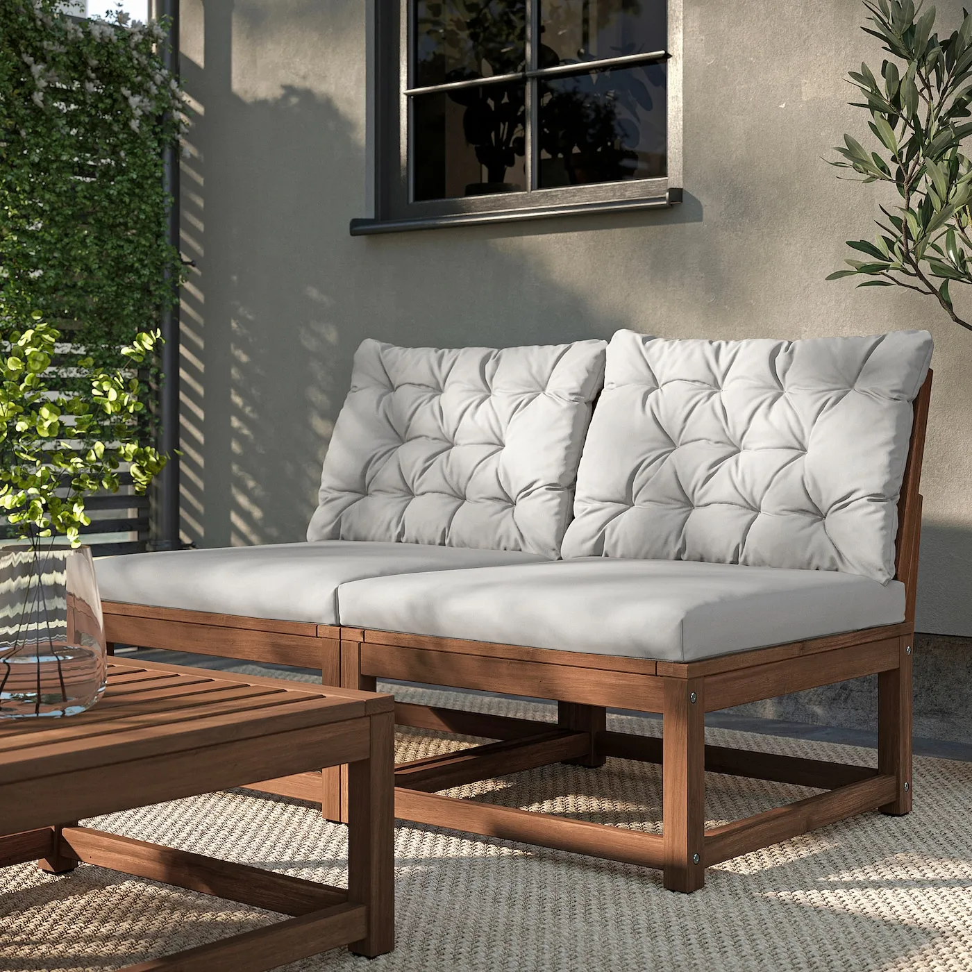 NÄMMARÖ, модульный диван на 2 места, для улицы, светло-коричневый/ Kuddarna светло-серый-бежевый