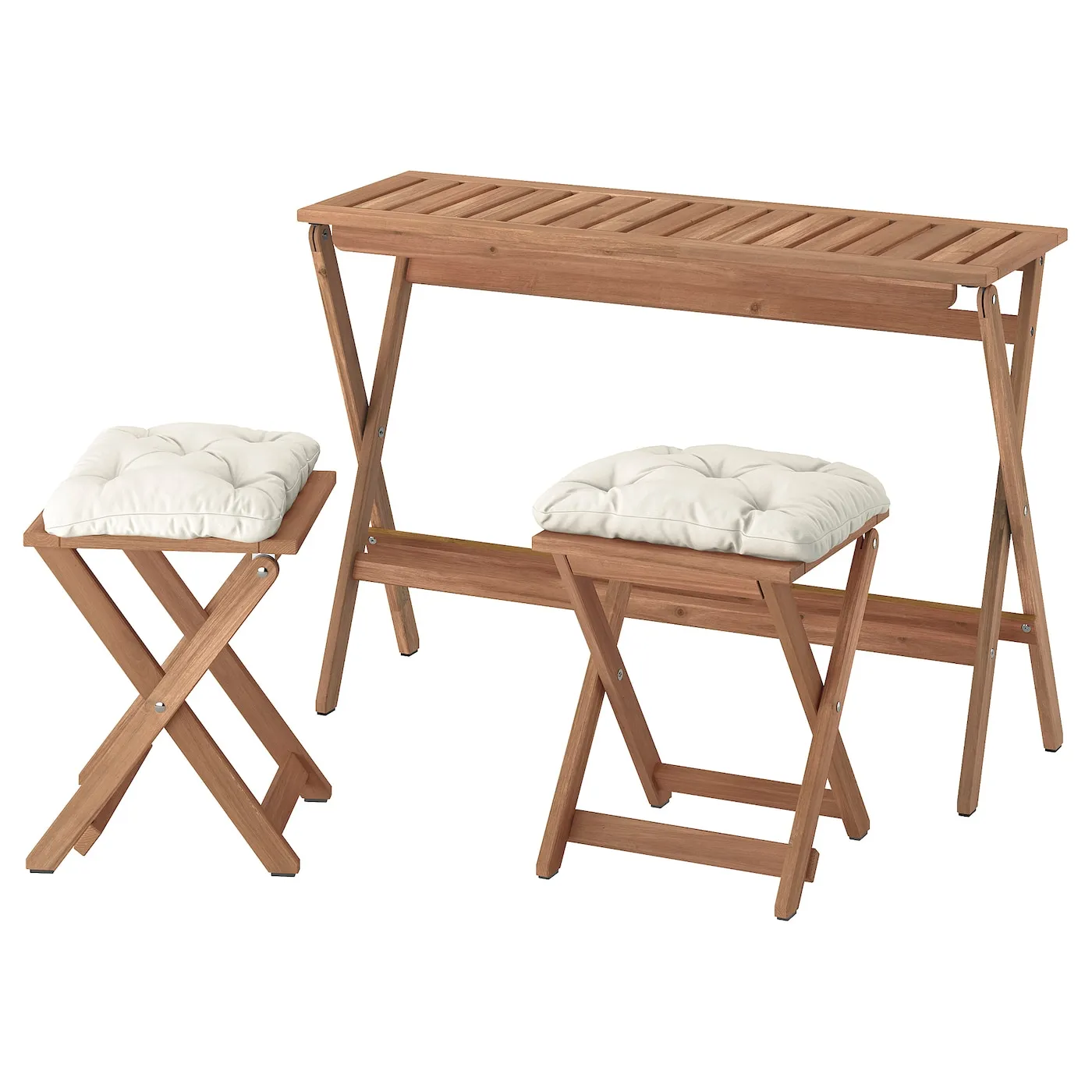 495.817.90 Стол и 2 табурета, для улицы, светло-коричневый с морилкой, складные, 108x37 см