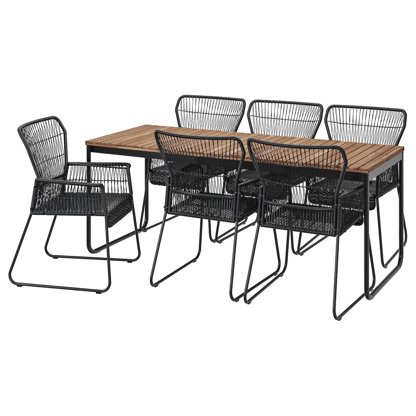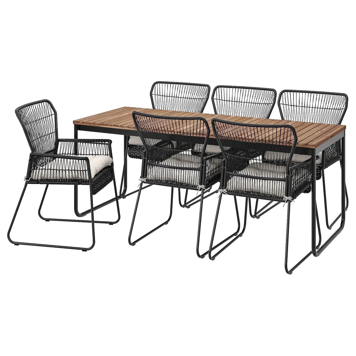 VÄSMAN / TALLSKÄR, Стол и 6 кресел с подлокотниками, для улицы, раздвижной, светло-коричневый с антрацитом, 135x190/74 см