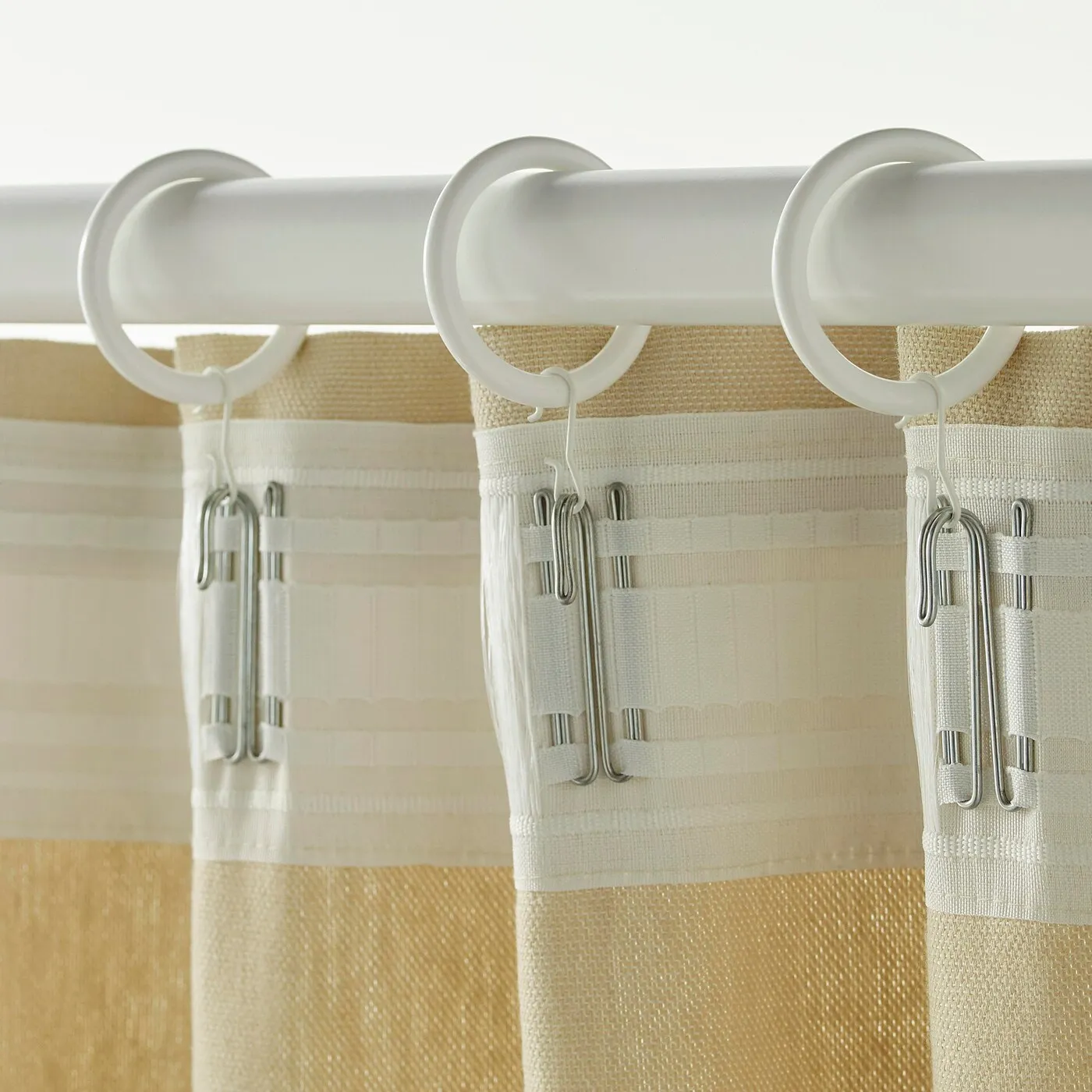 Эти белые кольца для штор легко скользят по карнизу. Вы можете выбрать способ крепления: с помощью клипс или крючков – всё уже входит в комплект.