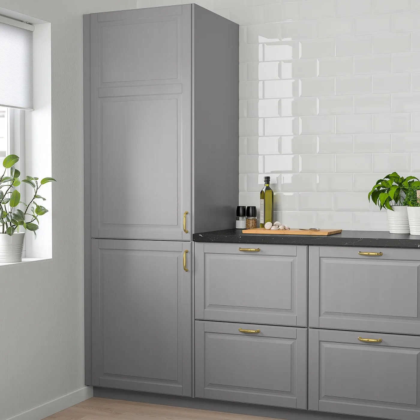 Дверь BODBYN имеет рамку и панели, которые придают ей отчётливый традиционный характер. Мягкий серый добавляет изысканный оттенок в вашу кухню.
