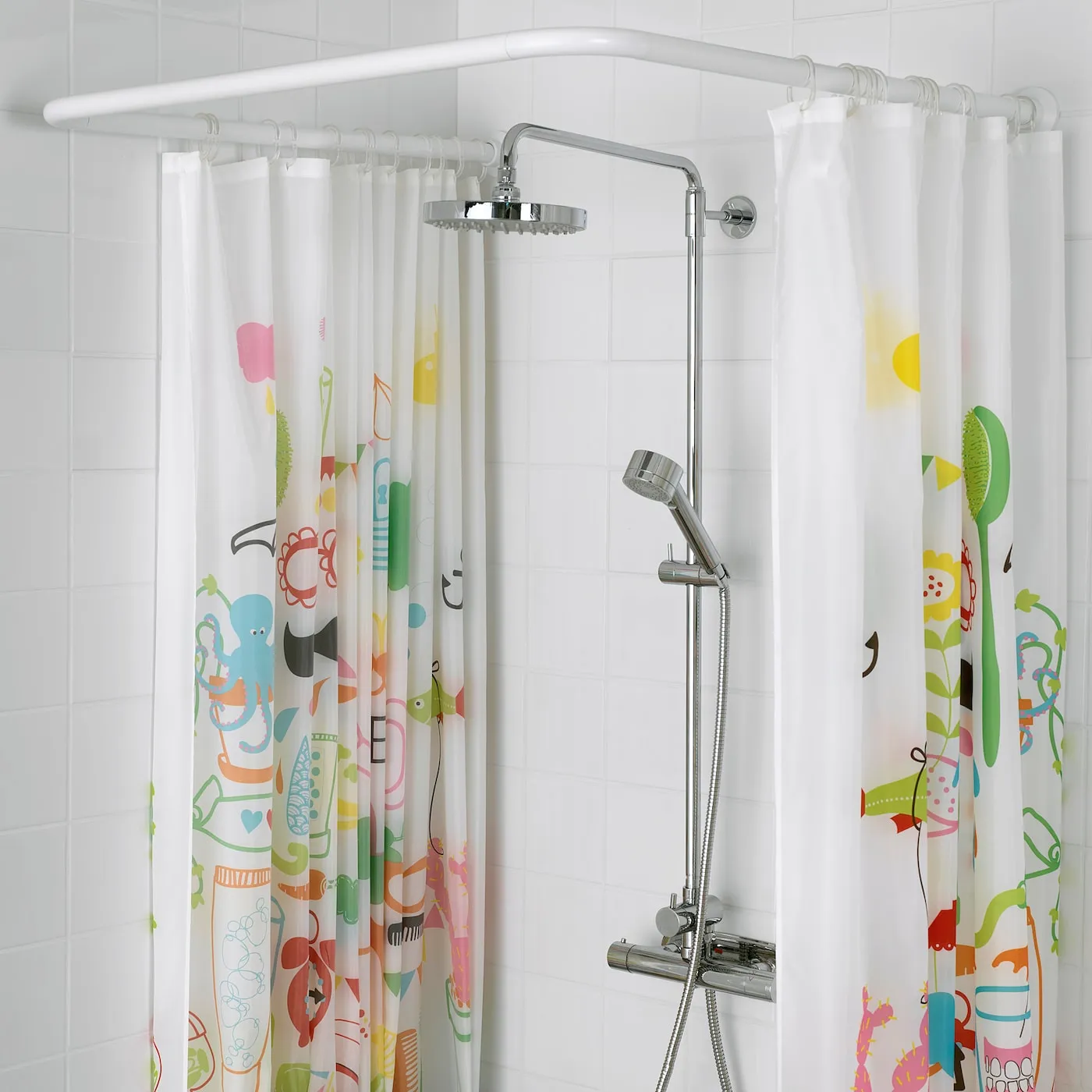 Карниз VIKARN для душевой занавески может быть установлен в форме U, L или угловым образом.