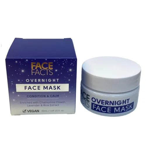 Ночная маска для лица Face Facts — это инновационное средство, созданное для интенсивного восстановления и увлажнения кожи во время сна. Объем 50 мл делает её удобной для использования как в домашних условиях, так и в путешествиях.