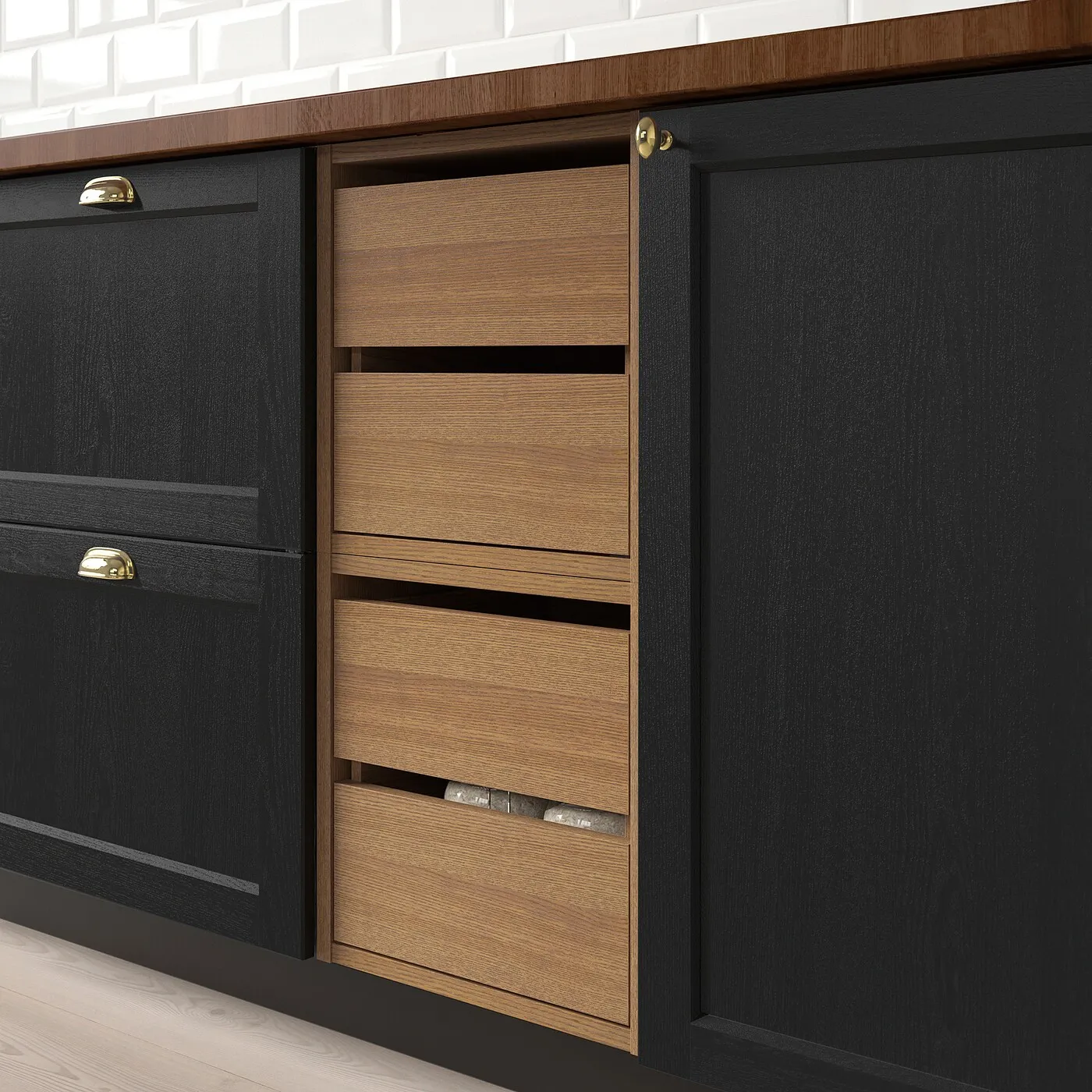 Решения для хранения VADHOLMA добавляют в кухню уникальные детали, которые делают её вашей. Эти ящики создают лёгкое впечатление, скрывая такие вещи, как столовые приборы, подсвечники и салфетки.