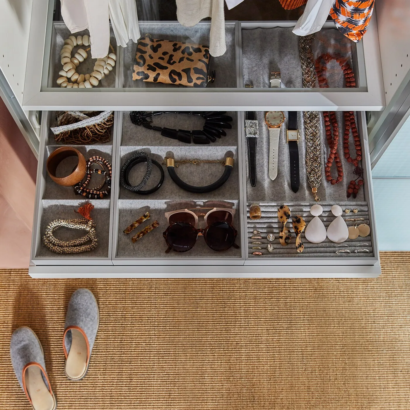 Мягкий фетр защищает ваши аксессуары и удерживает их на месте.
