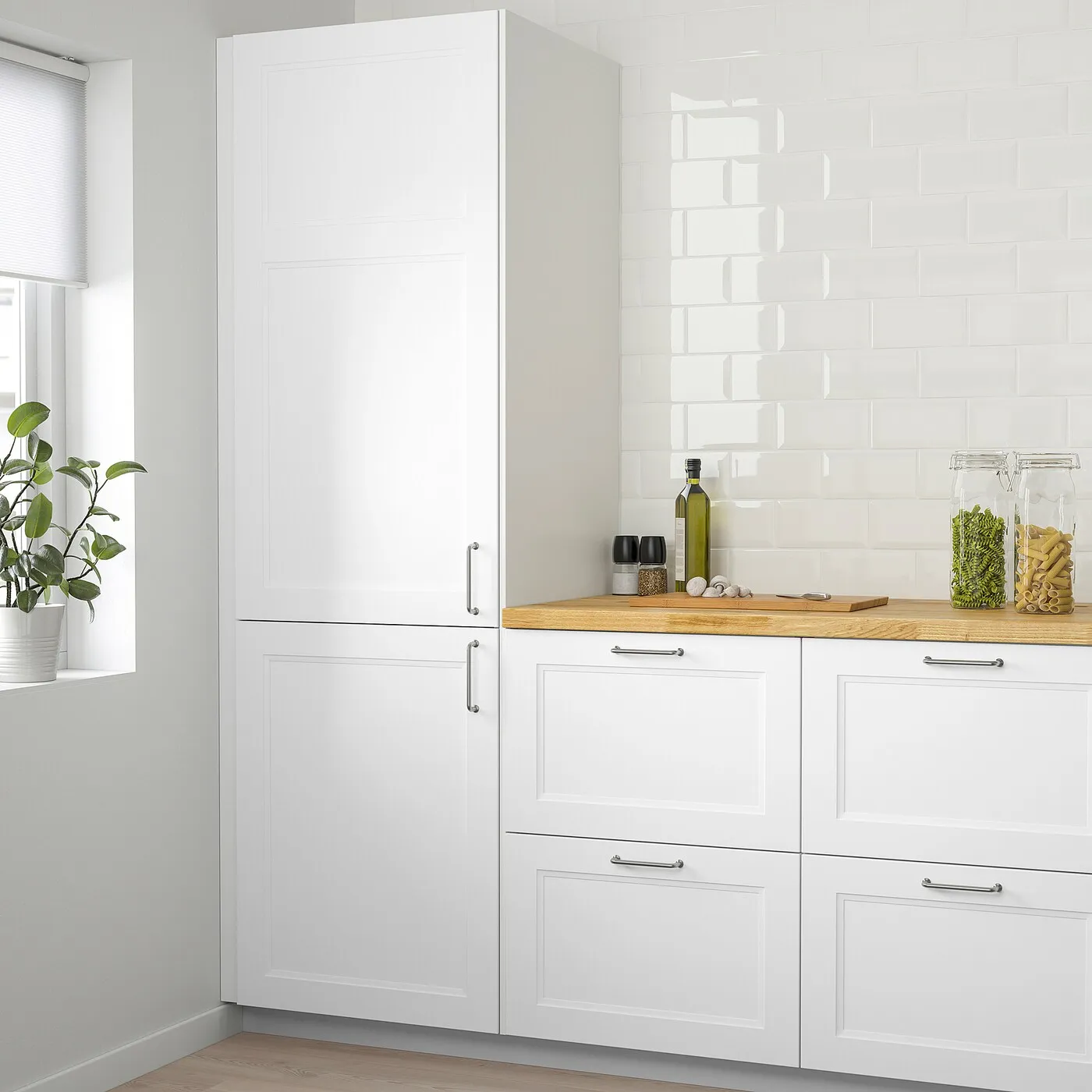 Дверь для кухни AXSTAD имеет матовую, белую поверхность с мягкими линиями и вставной панелью. Дизайн позволяет использовать ее как для создания современной, так и традиционной кухни.