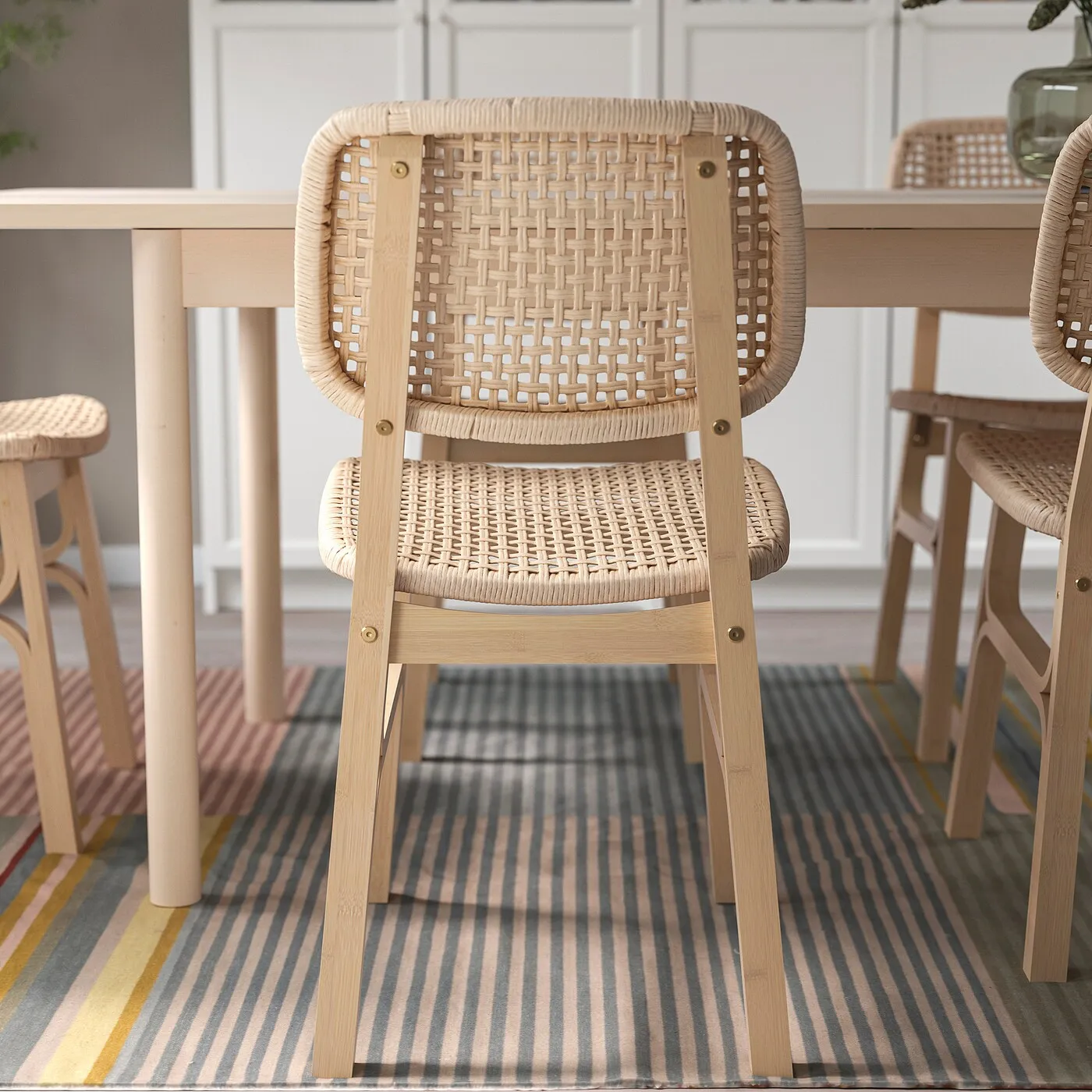 Дар природы, созданный для красоты и комфорта. Прочный каркас выполнен из износостойкого бамбука, а плетеное вручную бумажное сиденье обеспечивает надежность и упругость.
