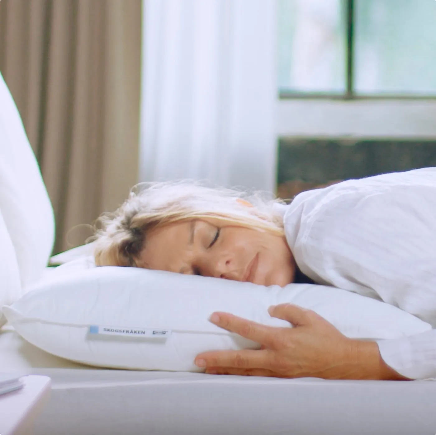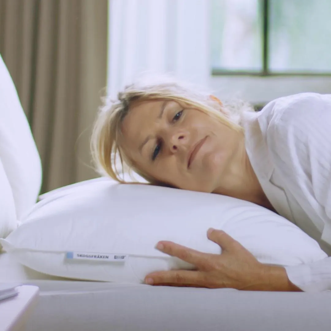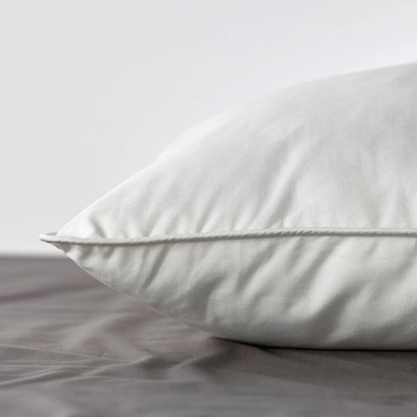 Низкая, простая в уходе подушка с тканью из смеси хлопка и лиоцелла, наполненная пустотелыми волокнами из переработанных источников.