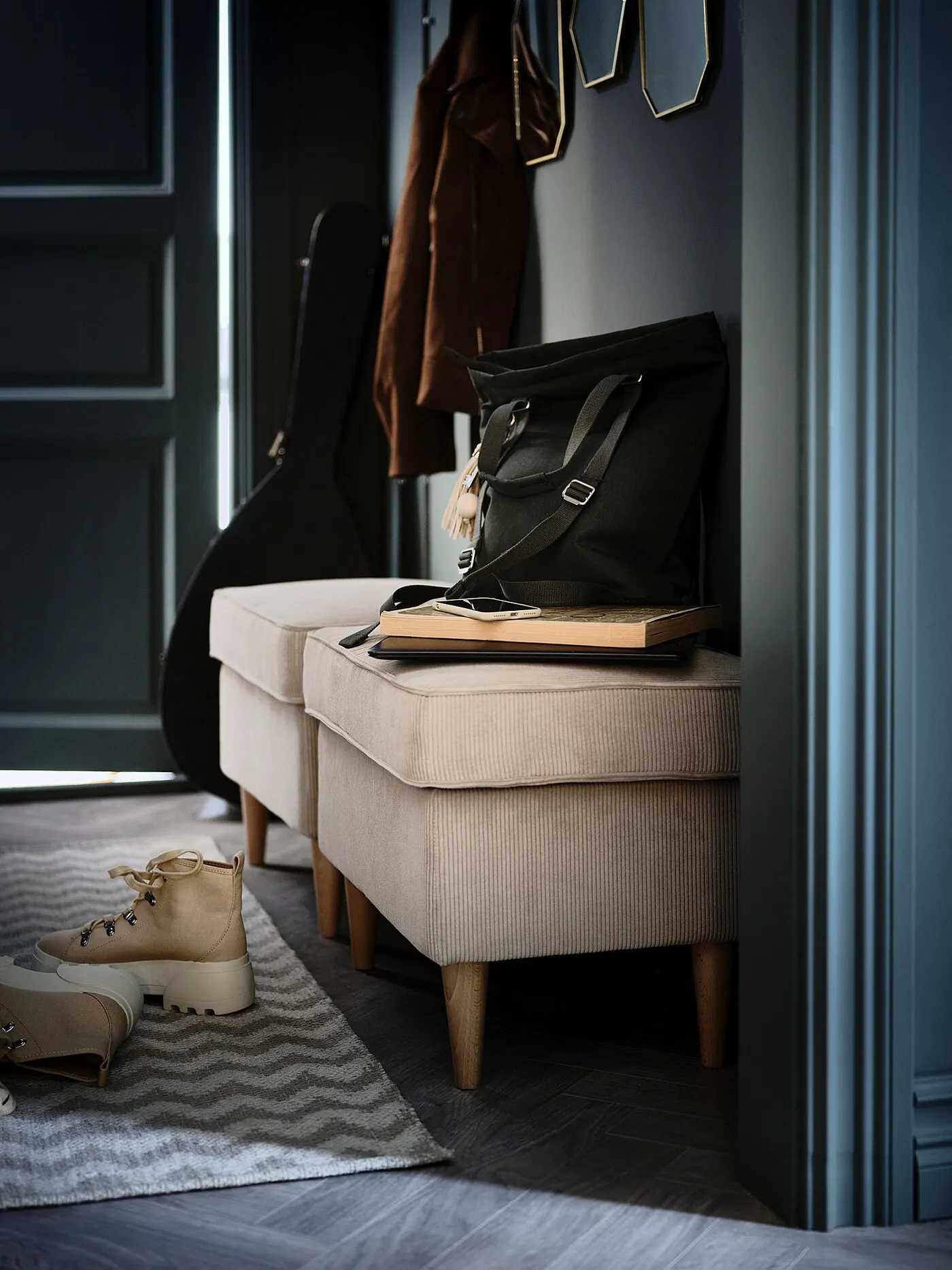 Идеальное дополнение к креслу STRANDMON или удобное и практичное дополнительное место для сидения. Мягкая и гладкая вельветовая обивка придает пуфу стиль вне времени, который никогда не наскучит.
