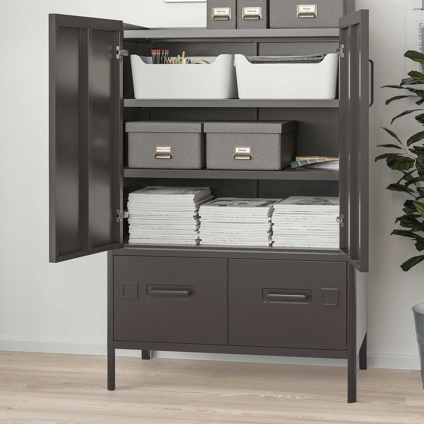 Регулируемые полки позволяют легко адаптировать пространство для хранения под размер ваших офисных принадлежностей и устройств, таких как папки или принтер.