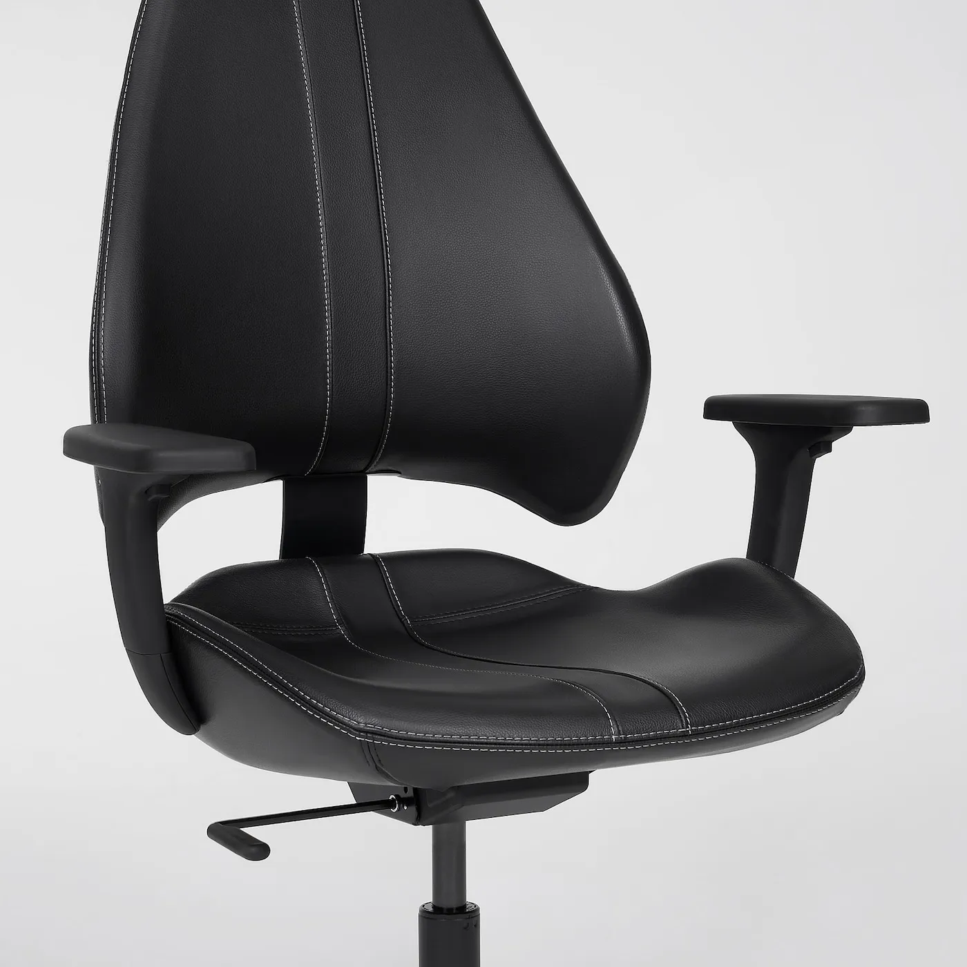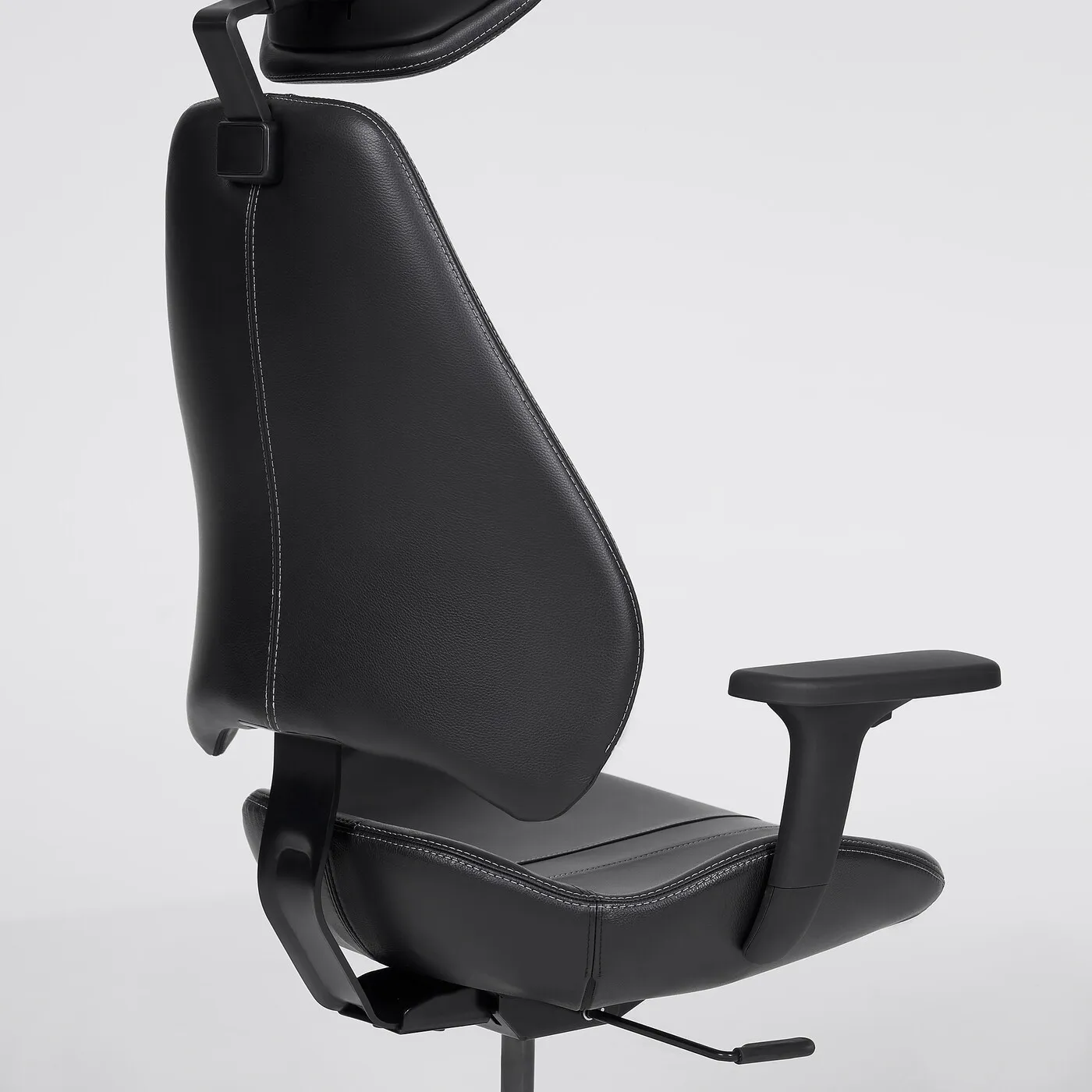 Стильное игровое кресло из прочной черной кожи. Обладает множеством умных функций, позволяющих настроить спинку, сиденье, угол наклона, подлокотники и подголовник для максимального комфорта.