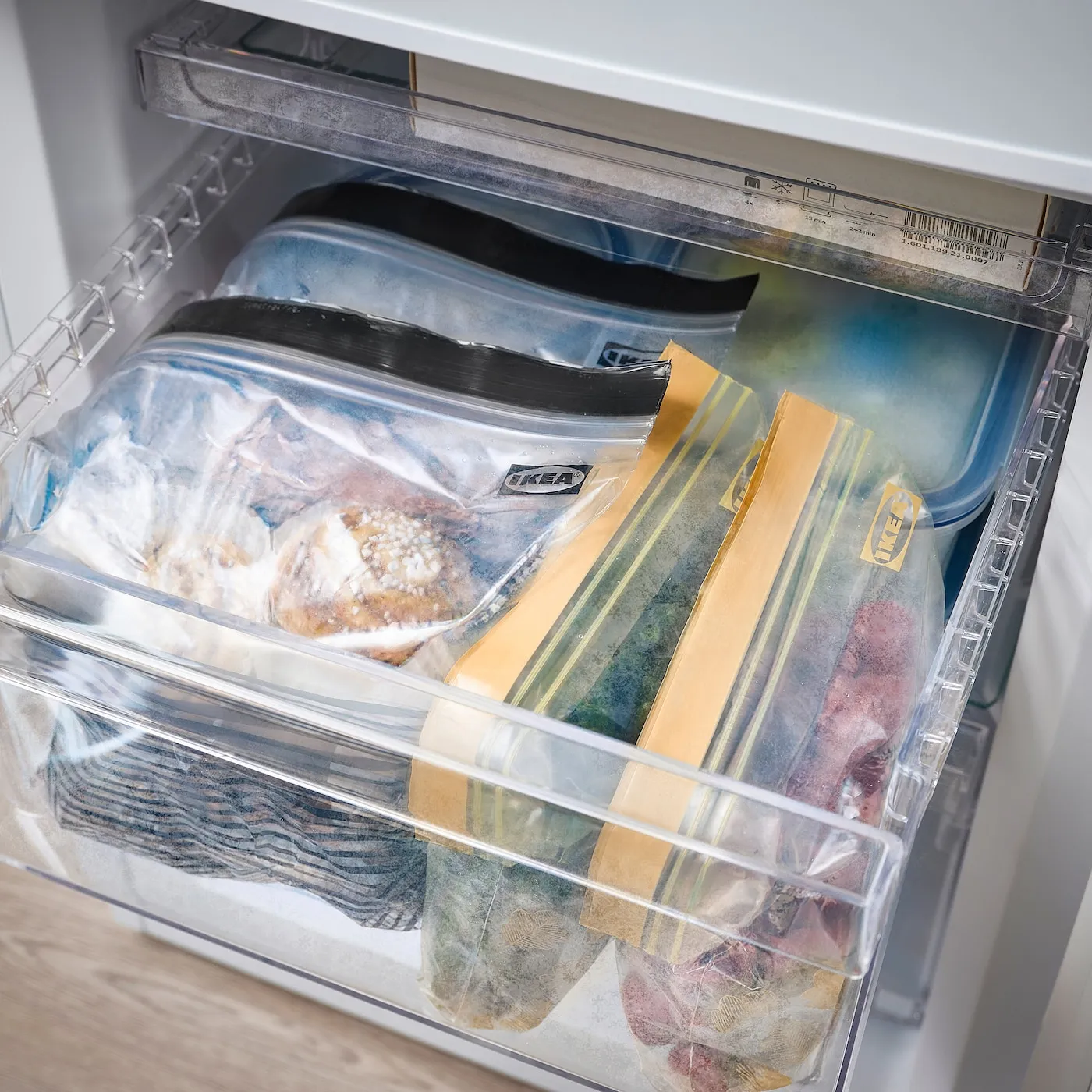 Пакеты ISTAD можно закрыть заново и использовать множество раз. Они сохраняют свежесть продуктов, выдерживают заморозку и подходят для продуктов температурой до 50 °C – это поможет сохранить порядок на вашей кухне и в доме.