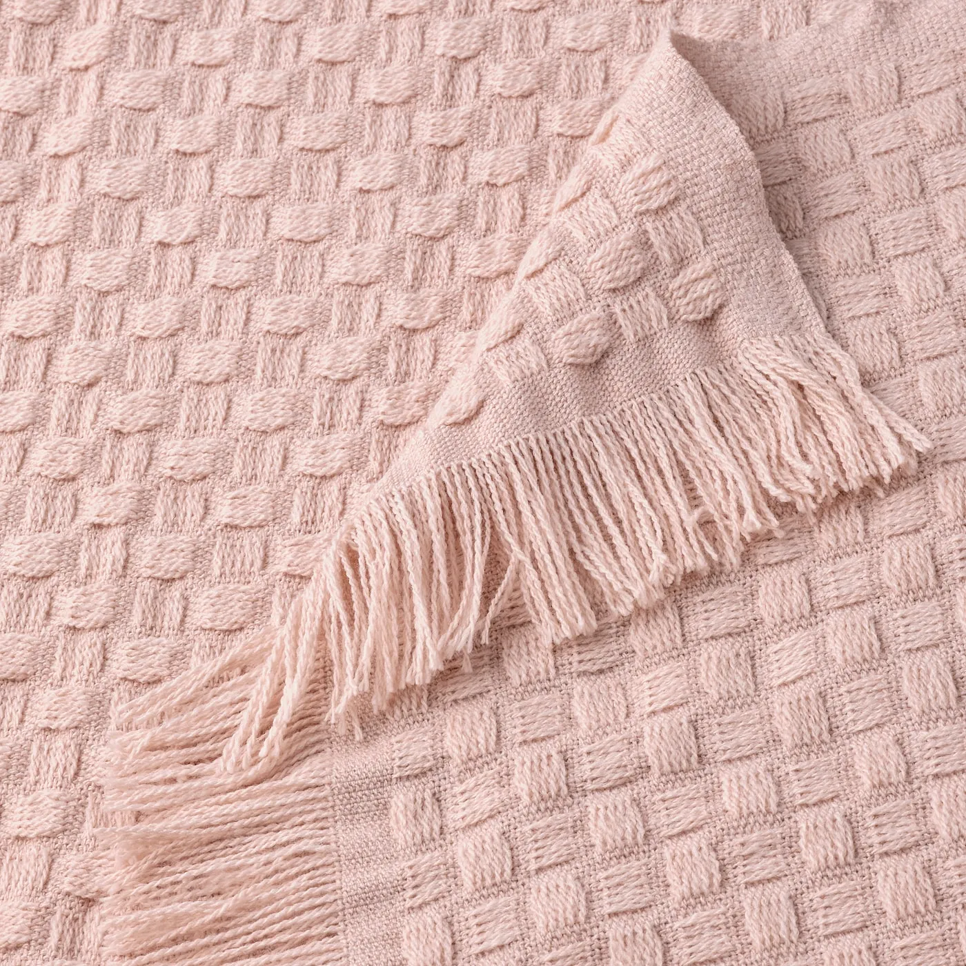 Плед HORNMAL в нежном светло-розовом оттенке - легкий, но при этом уютный. Плетение корзинкой из пряжи из переработанного полиэстера добавляет текстуру и объем, обещая вам теплые и пушистые моменты отдыха.