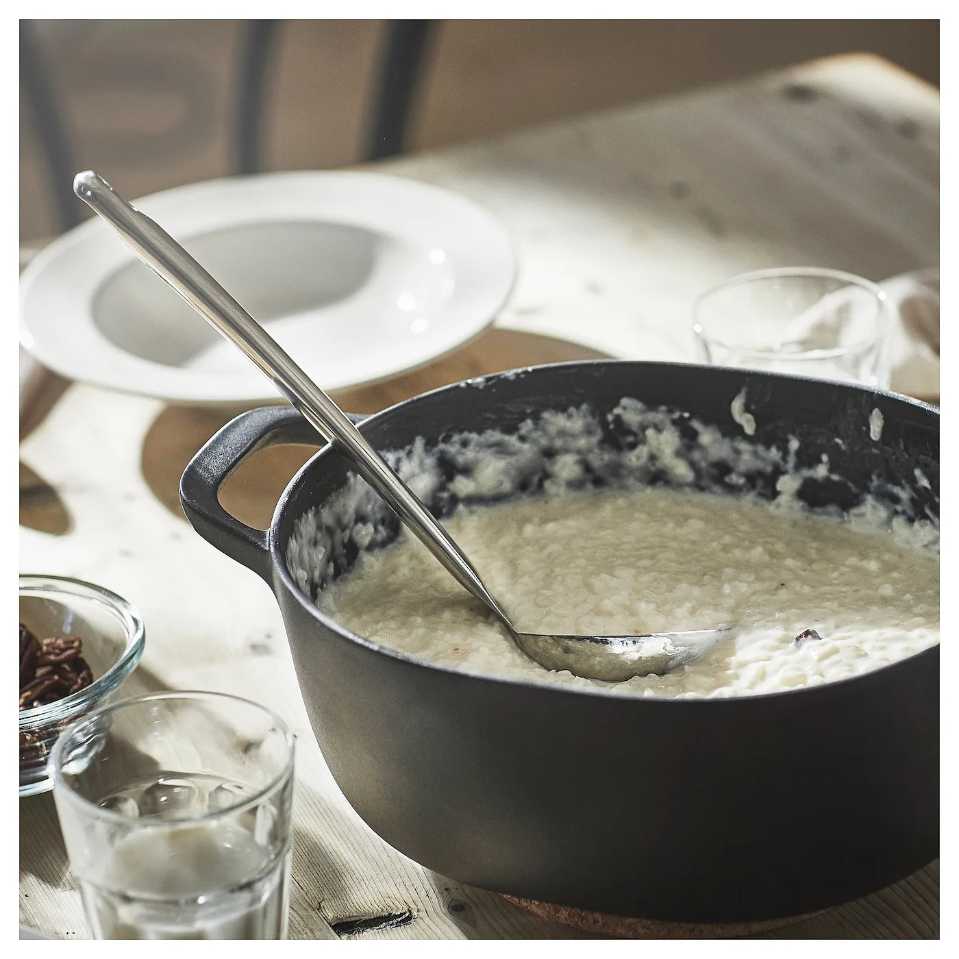 Разработанный Илсой Кроуфорд, половник FINMAT сочетает в себе красоту и простоту в использовании. Немного изогнутая ручка удобно располагается в кастрюле, а тонкий край предотвращает проливание при наливании супа.