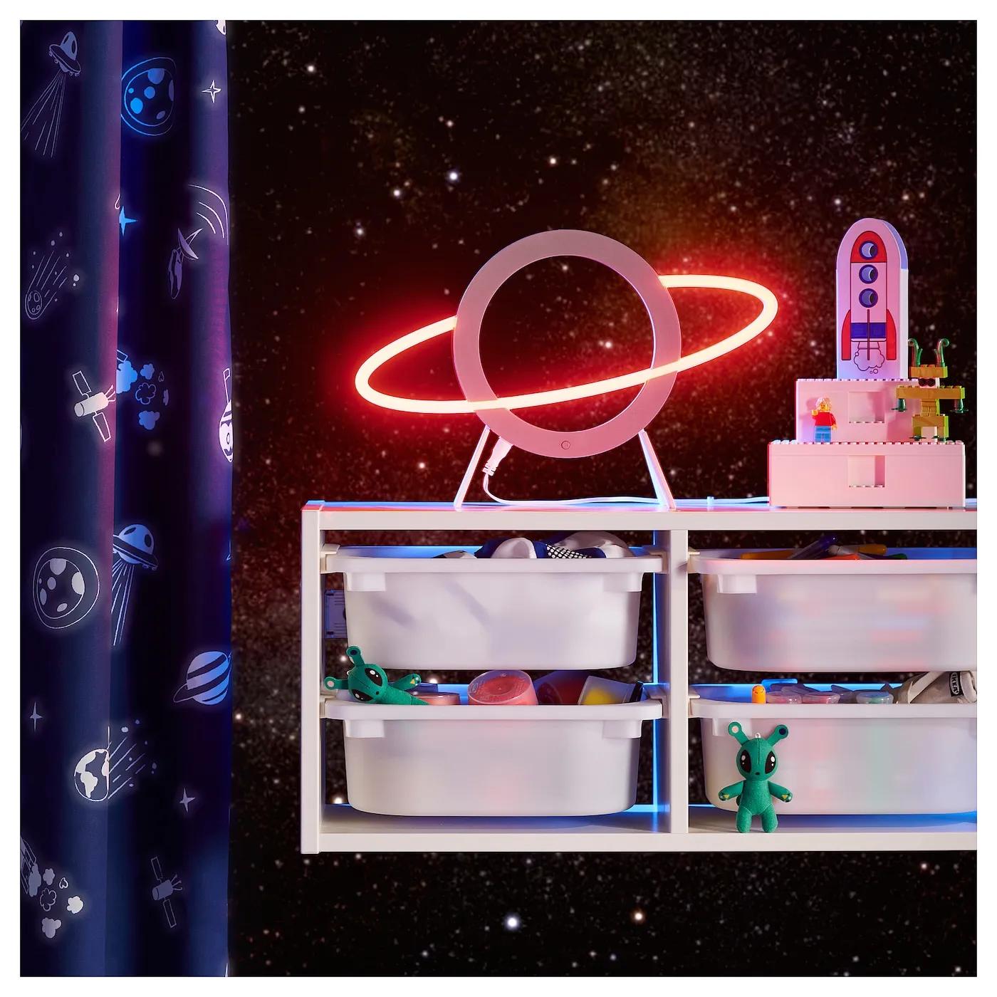 С игрушками, текстилем и лампами на космическую тему из коллекции AFTONSPARV мы стремимся пробудить интерес и вдохновить детей.