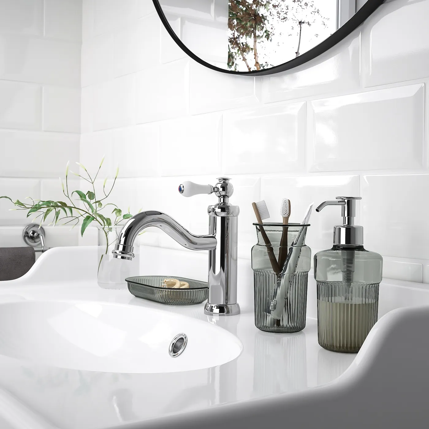 Аксессуары для ванной BROFJÄRDEN с блестящими хромированными деталями напоминают о стильных, проверенных временем дизайнах прошлого. Этот набор из 3 предметов идеально подходит для зубных щеток, мыла и мелочей.