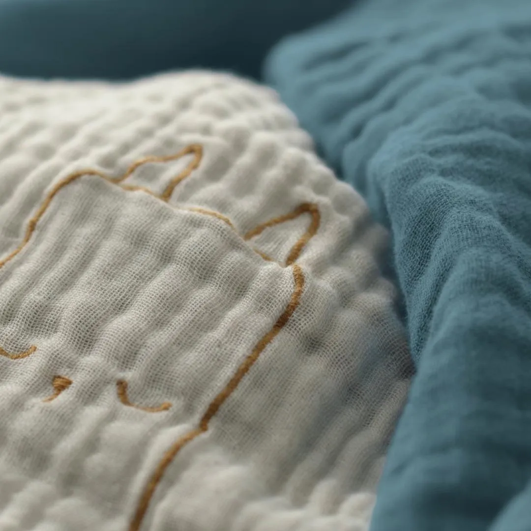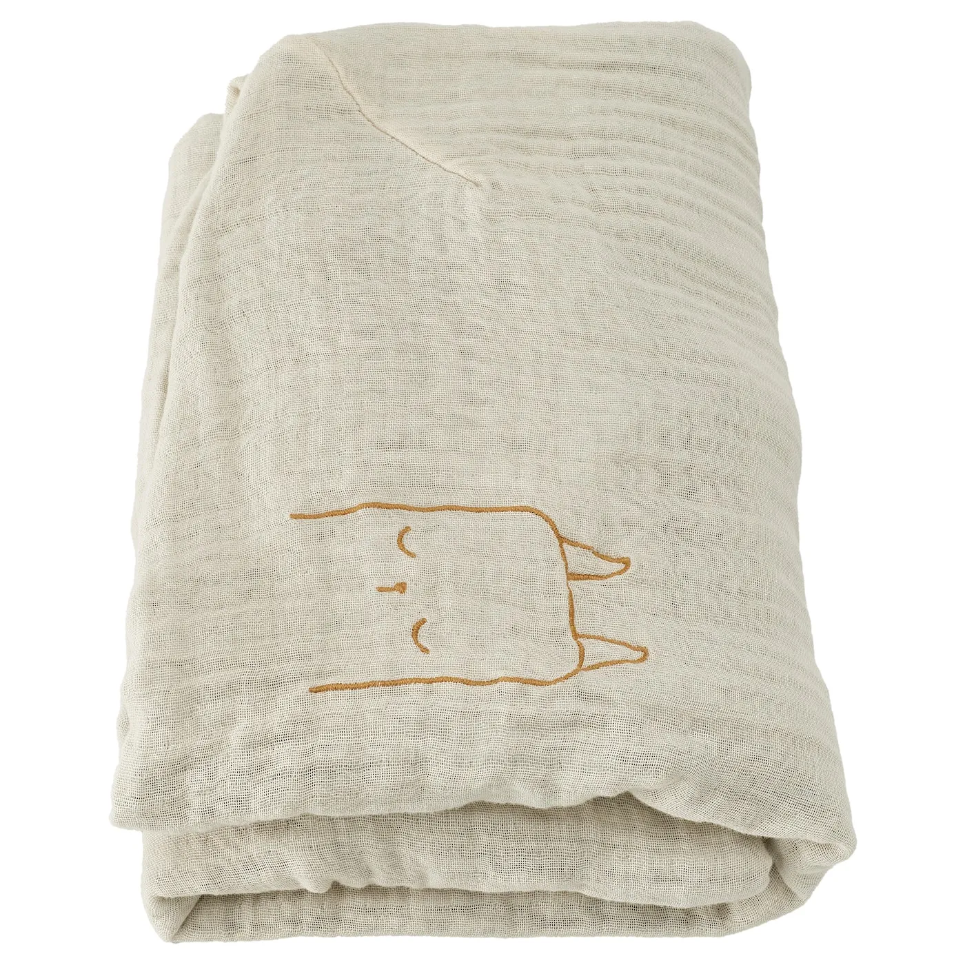 Мягкий чехол из муслина служит уютной оболочкой для пеленального матраса вашего малыша. А видите ли вы вышитую кошечку на боку?