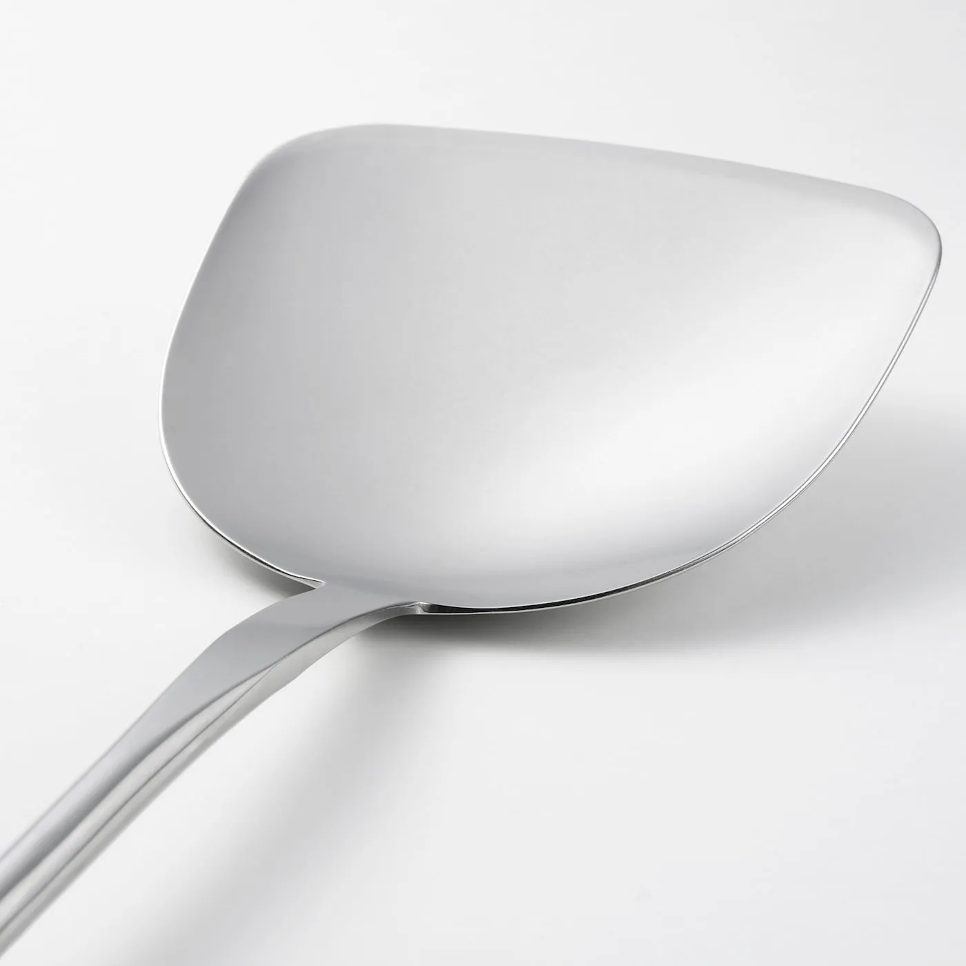 Закругленный край лопатки подходит для формы вока, что позволяет быстро и эффективно перемешивать ингредиенты на дне и по бокам.