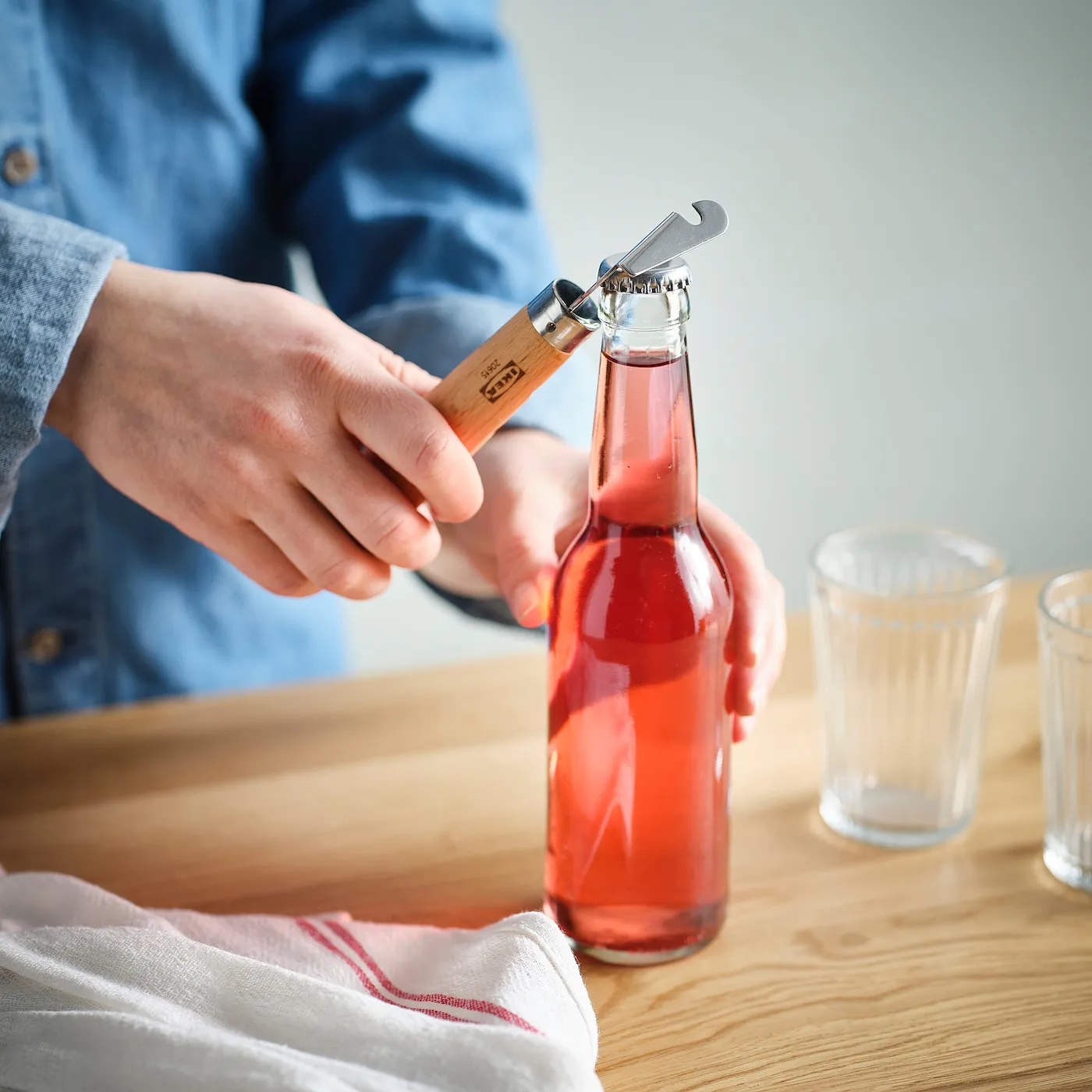 Это комбинированная открывалка с прочной деревянной ручкой сделает вас незаменимым человеком в повседневной жизни и во время вечеринок. Когда все бутылки и банки будут открыты, вы можете повесить её за отверстие на ручке.
