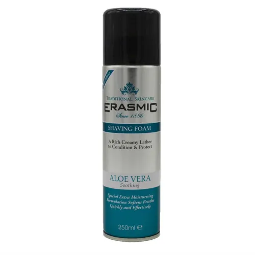 Erasmic Shave Foam Aloe Vera - это специально разработанная пена для бритья, которая сочетает в себе преимущества обильной пены и успокаивающие свойства алоэ вера.