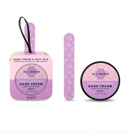 Содержит 50 мл увлажняющего крема для рук и небольшую карманную пилочку для ногтей