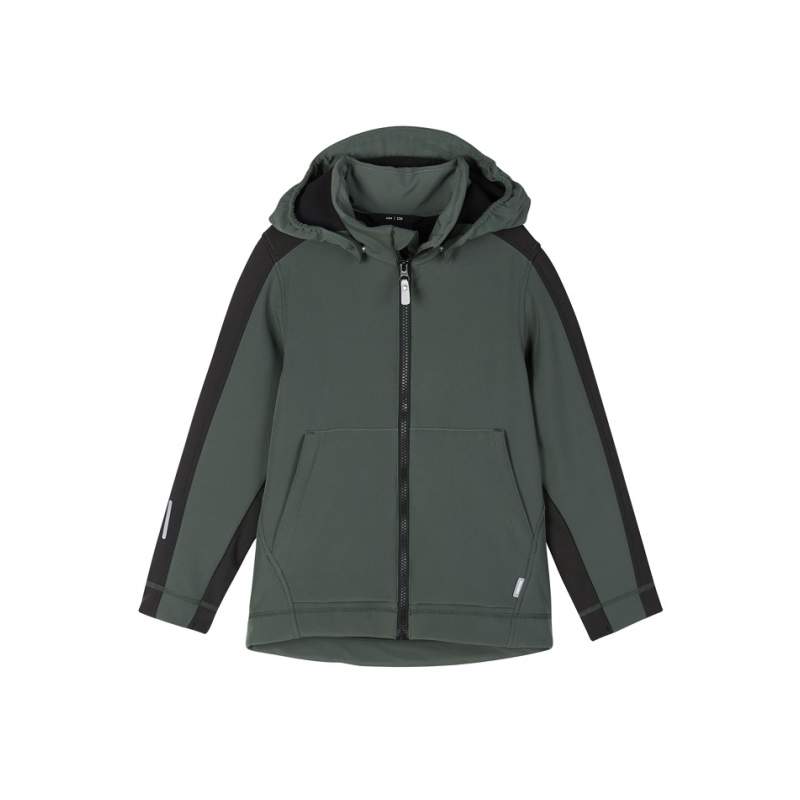 Удобная куртка софтшелл для школьников. Водонепроницаемая и изготовлена из переработанных материалов. Флис на изнанке.