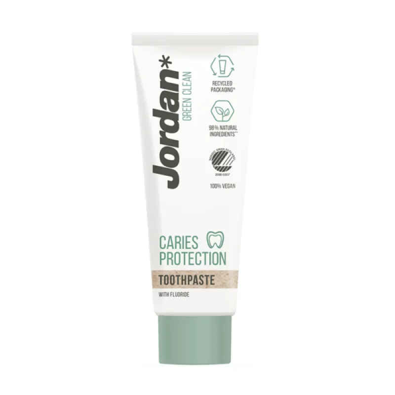 Зубная паста Green Clean Caries Protection содержит 98% натуральных и тщательно отобранных ингредиентов. В упаковке использован переработанный пластик. Паста содержит экстракт зеленого чая, ксилит и фторид.