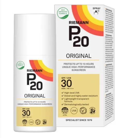 Технология тройной защиты солнцезащитного спрея P20 ORIGINAL SPF 30 обеспечивает защиту до 10 часов, обладает высокой водостойкостью.