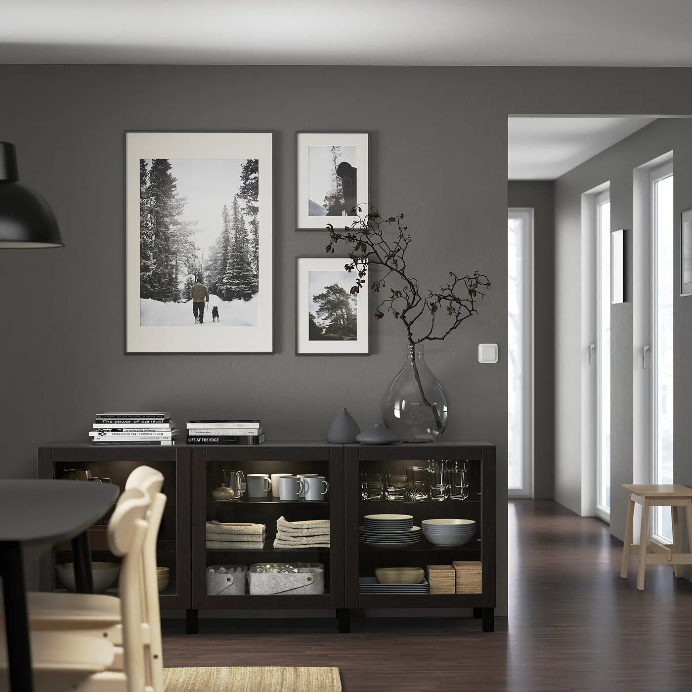 Спокойно откладывайте вещи на потом! Комбинация буфетов предоставляет вам достаточно пространства для хранения вещей и просторную поверхность для создания стильной композиции — или чтобы временно поставить блюда во время еды.
