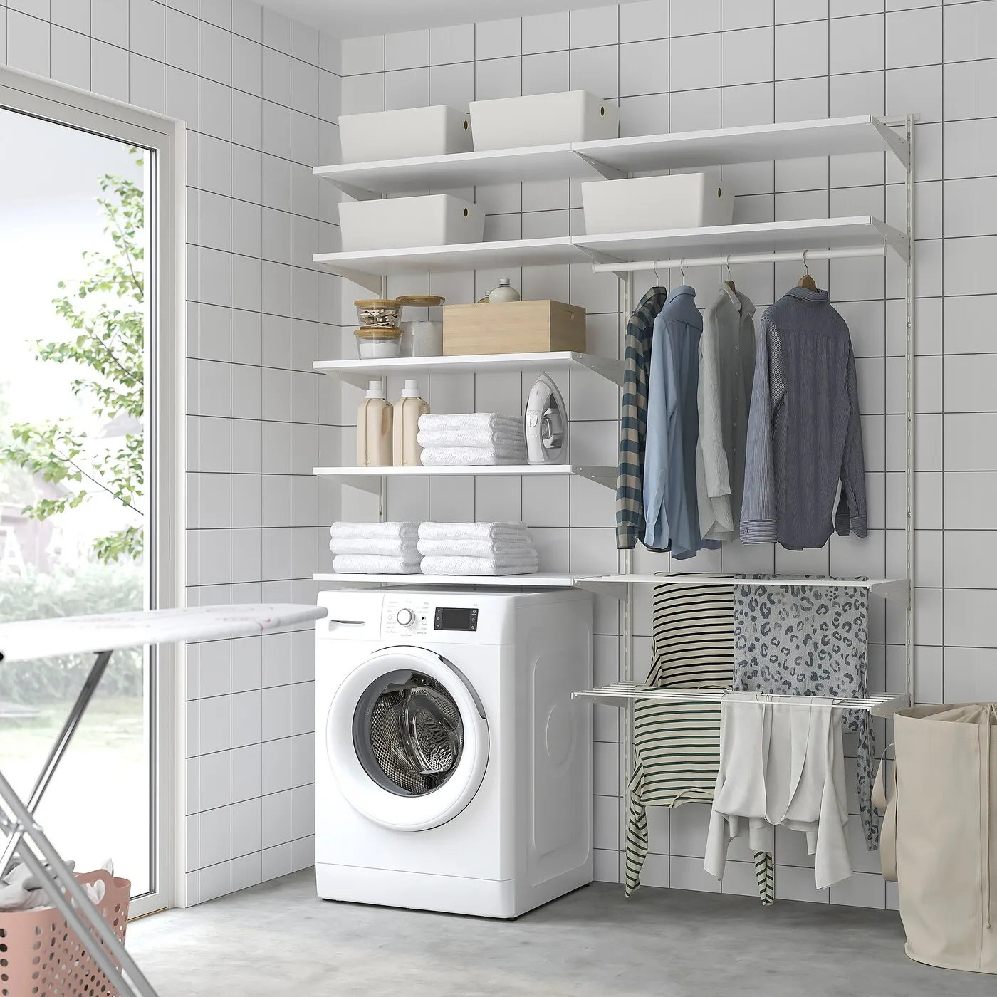 Настенная система хранения BOAXEL упрощает процесс ухода за одеждой и придаёт ему чуть больше радости. Вы легко сможете создать индивидуальное решение для стиральных средств, грязного и чистого белья, которому нужно высохнуть.