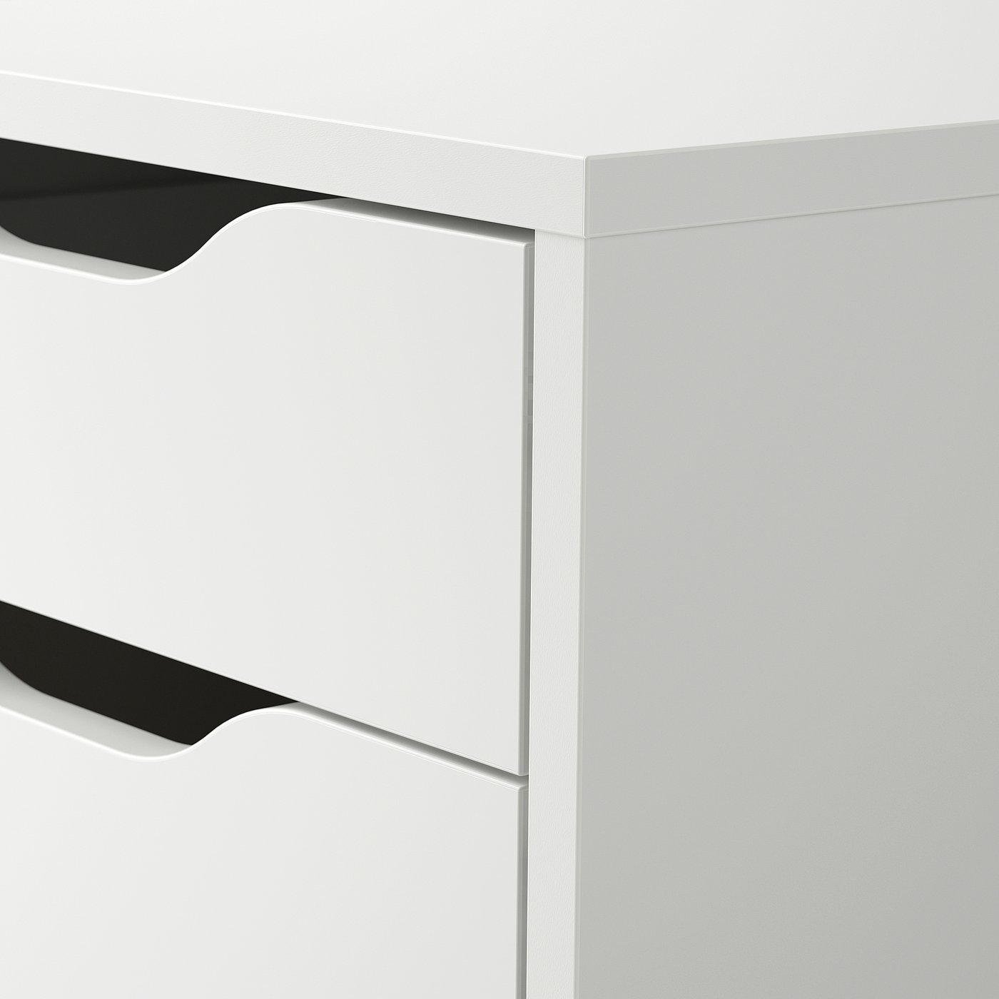 Вырезанные ручки не только добавляют характер блоку с ящиками, но и позволяют легко их захватывать и открывать.