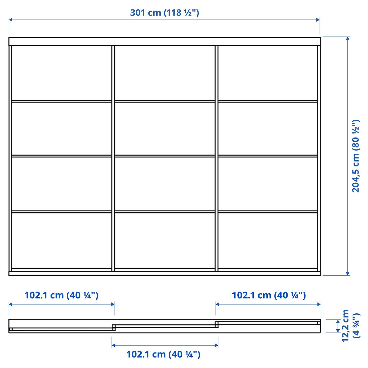 Каркасы и рельсы дверей SKYTTA доступны в белом, черном и алюминиевом цветах.