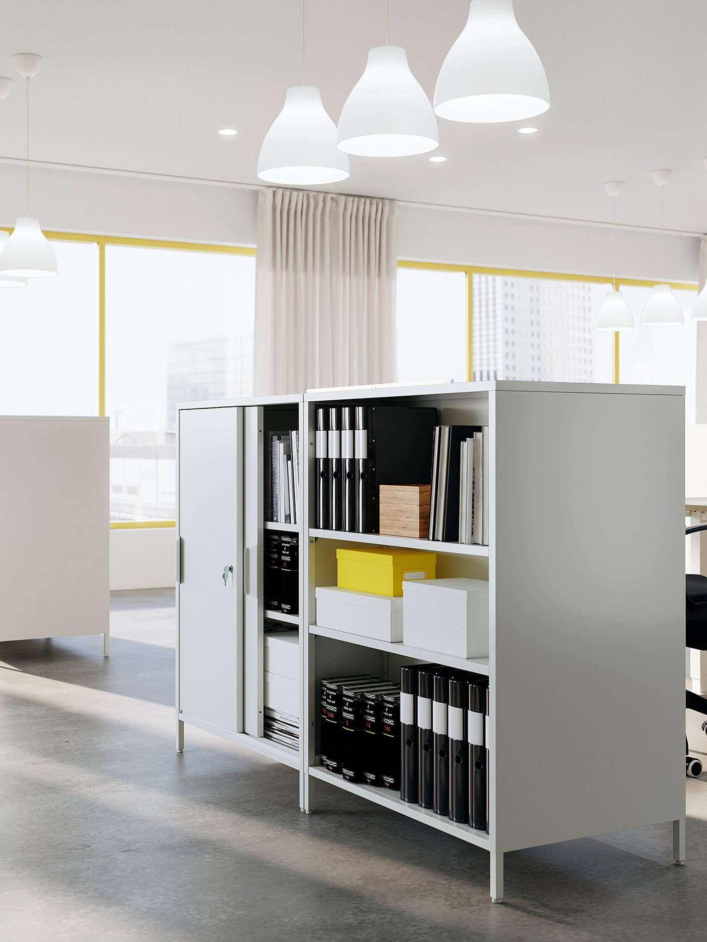 Отдельностоящий шкаф идеально подходит для использования в качестве перегородки между разными рабочими зонами в одной комнате. Обеспечивает уединение, не полностью закрывая рабочее пространство, и отлично подходит как для малых, так и для больших площадей.