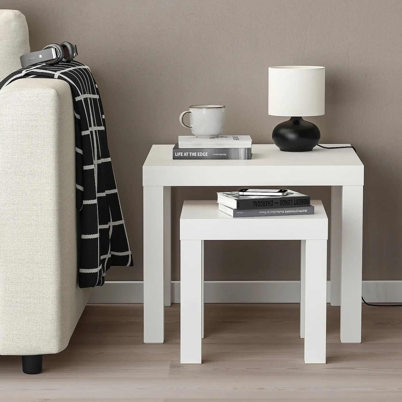 Вы можете использовать эти столики LACK по отдельности, вместе или задвинуть меньший под больший, например, чтобы сэкономить место, когда они не используются.