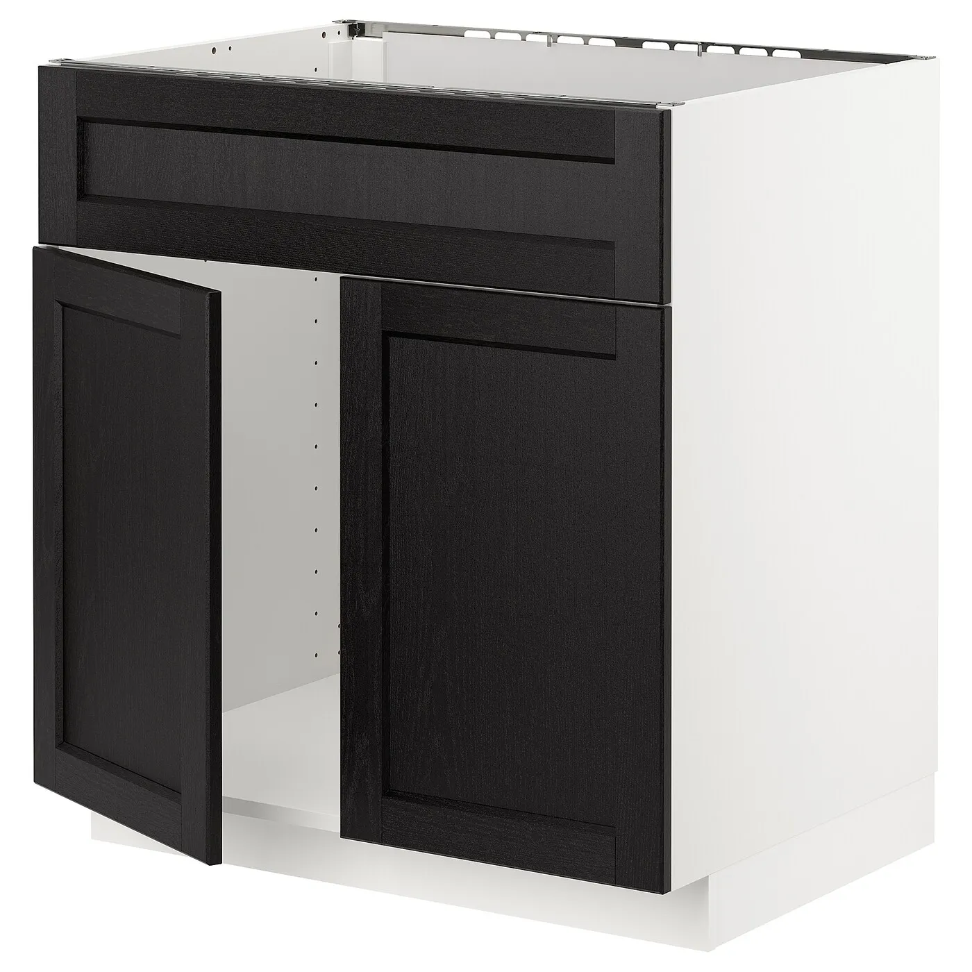 Кухонная система METOD предоставляет безграничные возможности для создания кухни вашей мечты. С фасадами LERHYTTAN черного цвета с фасками кухня приобретает теплый и традиционный характер.