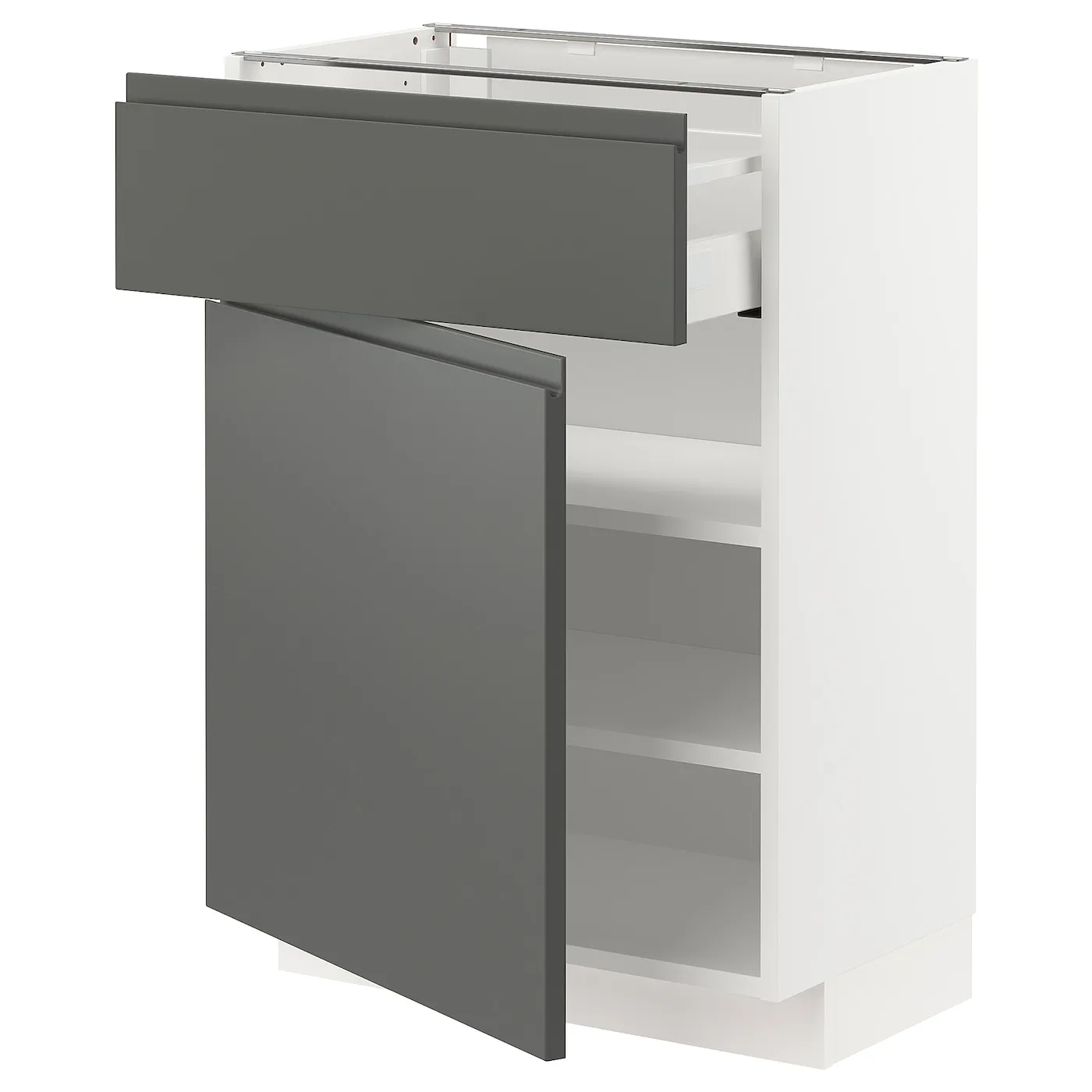 Система кухонной мебели METOD предоставляет неограниченные возможности для создания кухни вашей мечты. В сочетании с фасадами VOXTORP в матовом тёмно-сером цвете с интегрированными ручками, вы получаете стильный и современный вид, приносящий уют и спокойствие.