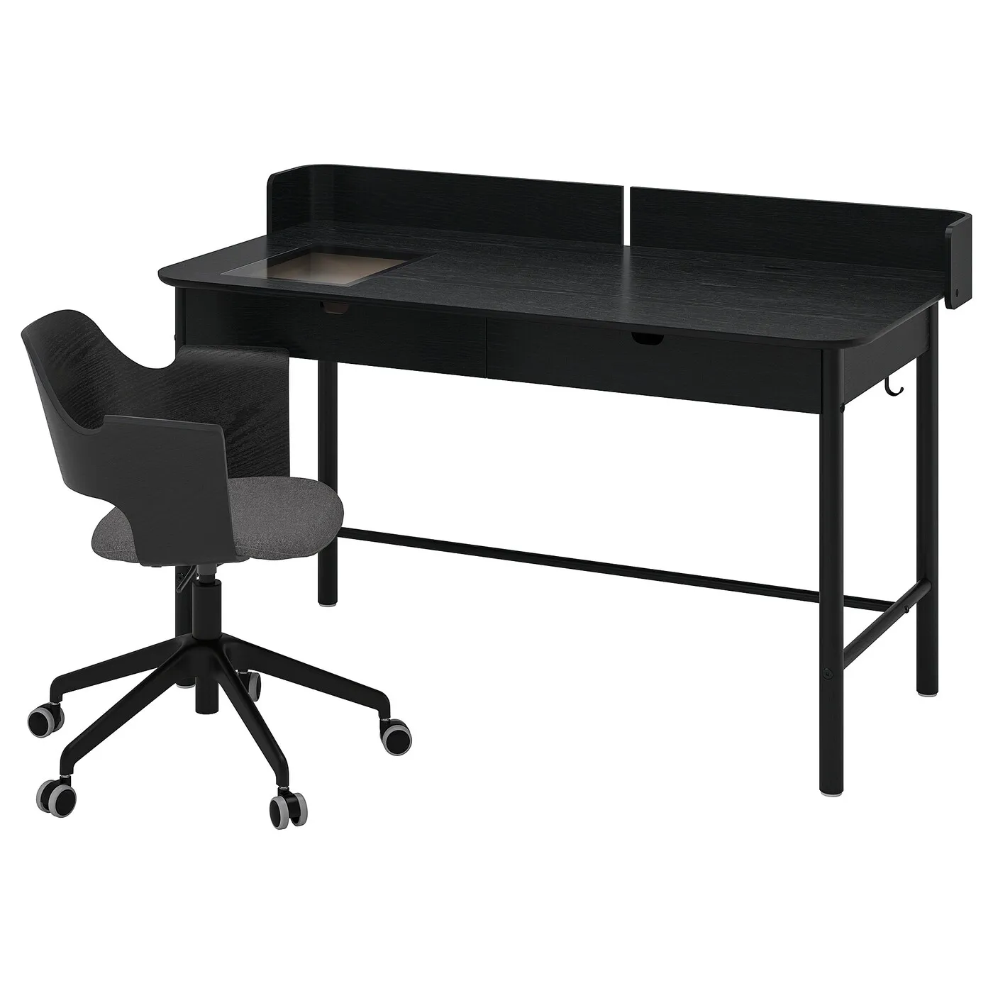 Готовое рабочее место с четкими линиями и продуманными функциями. Стул FJÄLLBERGET обладает элегантным дизайном из гнутой древесины, а стол RIDSPÖ оснащен ящиком с стеклянной крышкой для заметок или размещения памятных вещей!