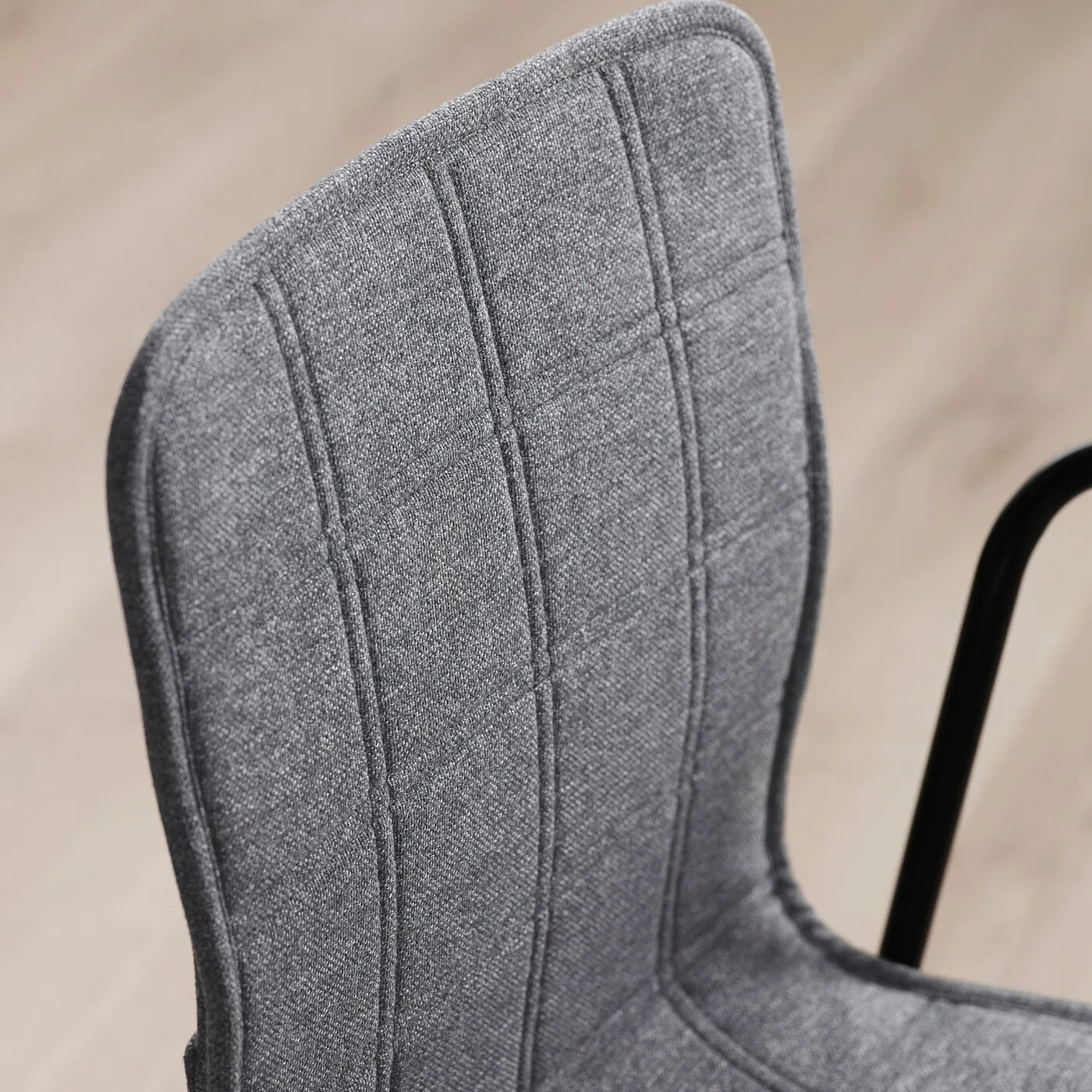 Резиновые подлокотники удерживают стул на месте, когда его навешивают на стол, что облегчает уборку пола. Более тёмный цвет скрывает загрязнения, которые появляются от частого использования.