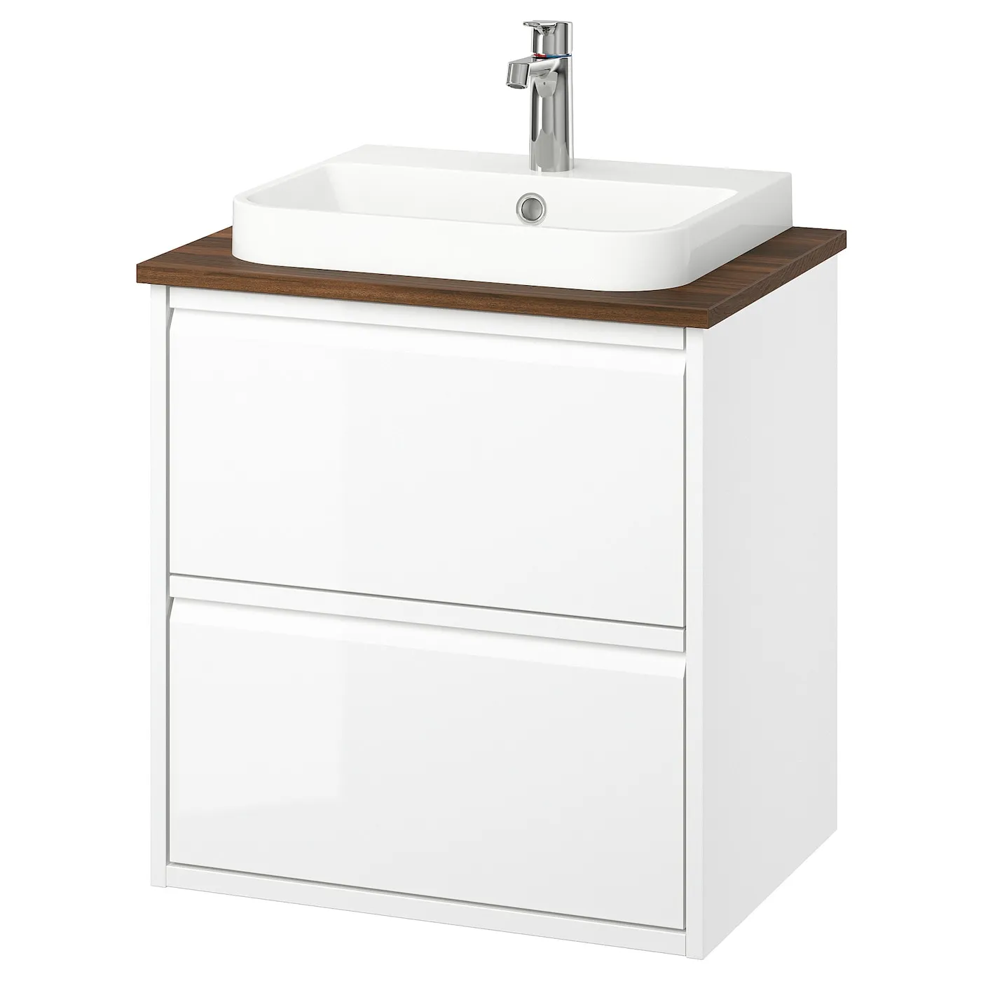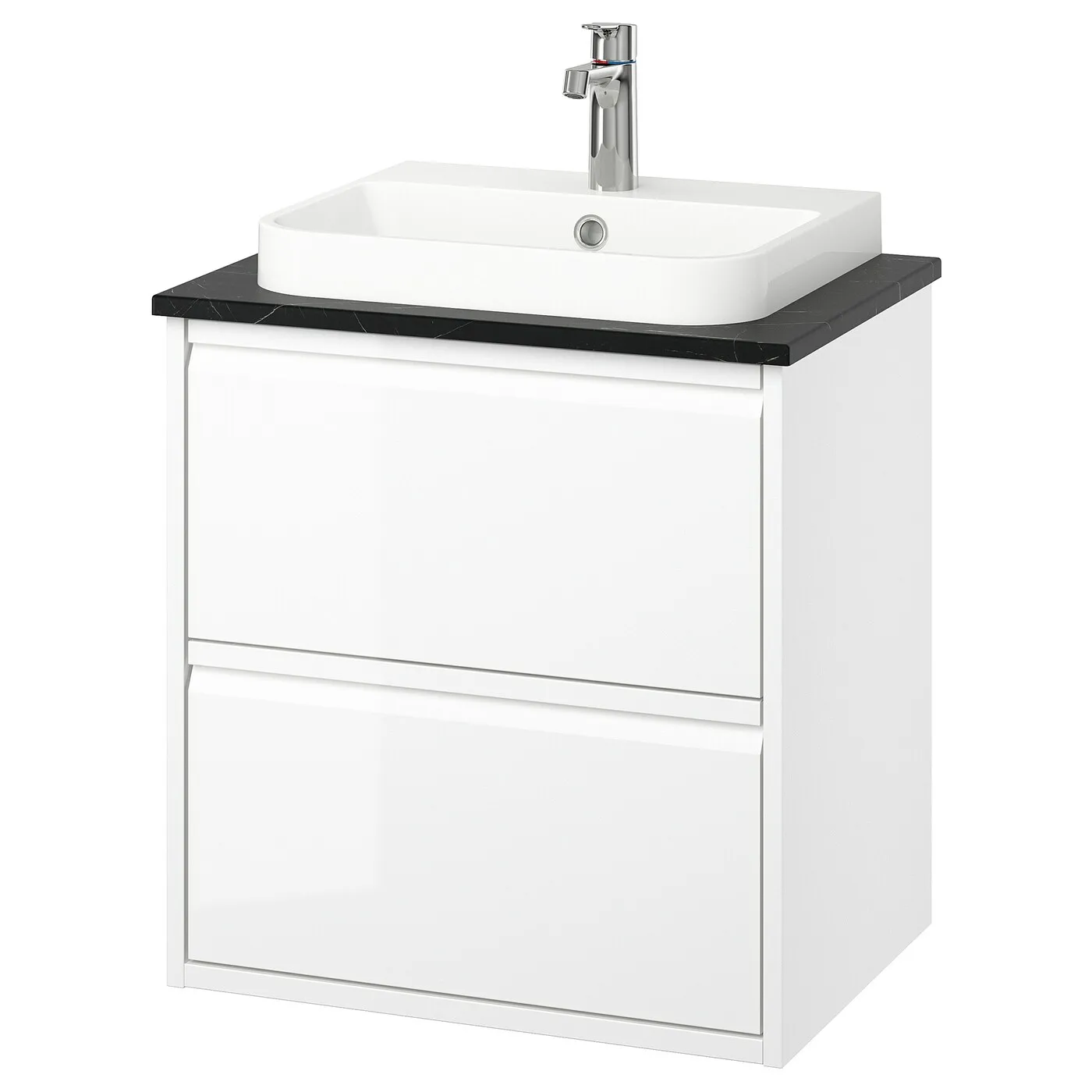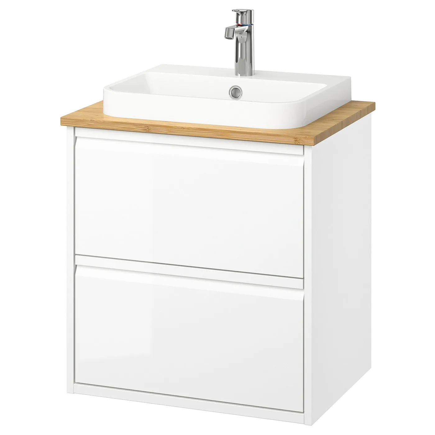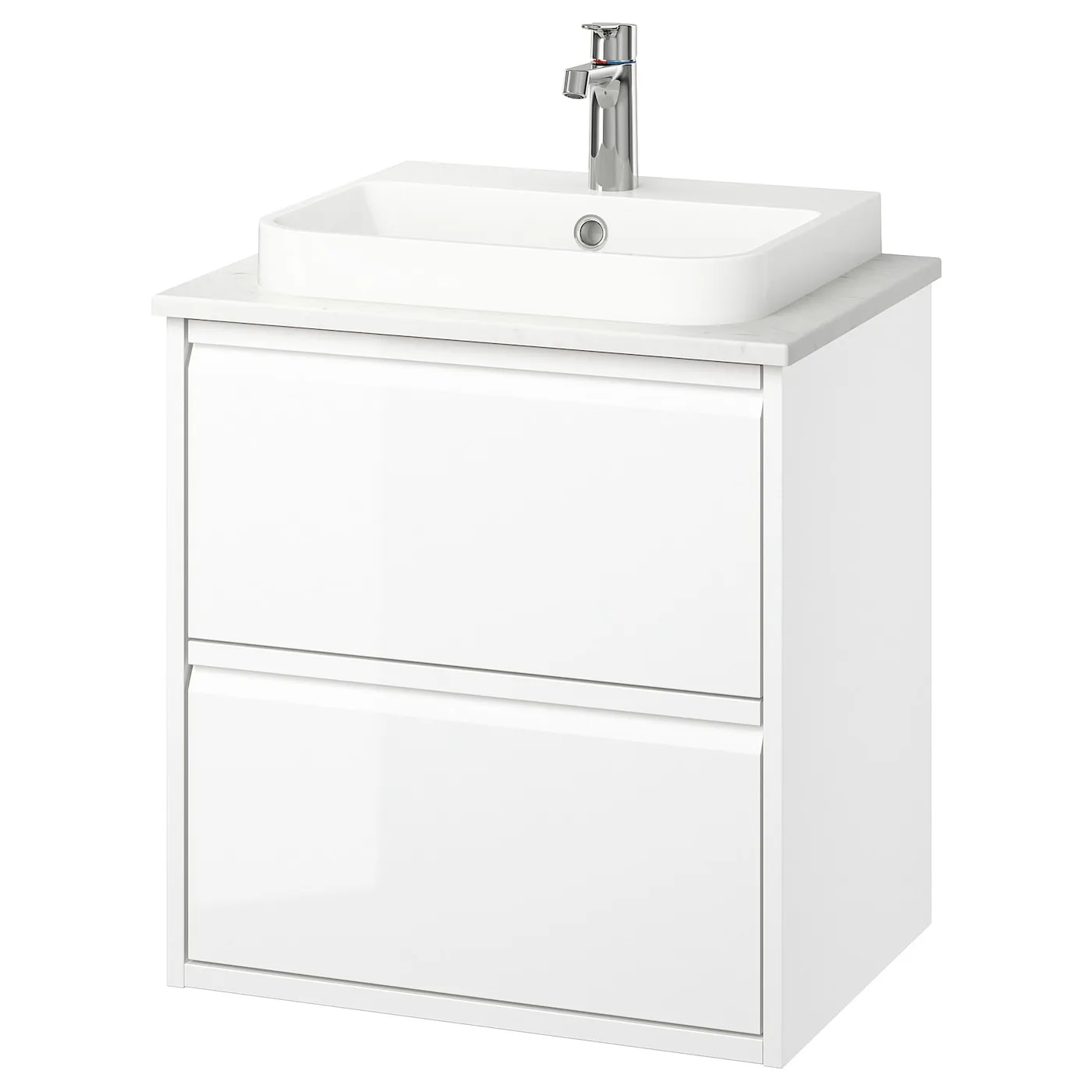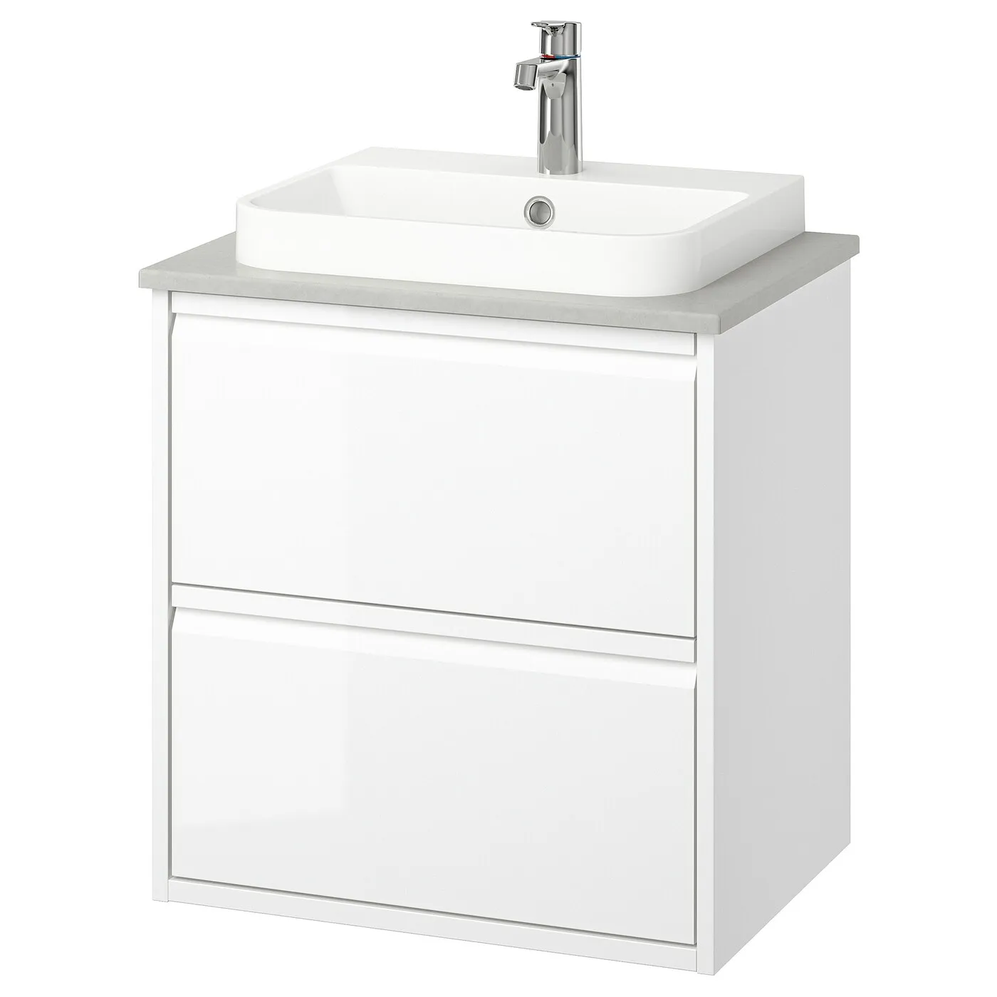 Мебель для ванной ÄNGSJÖN впечатляет современным дизайном и минималистичными деталями. Этот комплект с полувстраиваемым умывальником и столешницей создаст стильный и уникальный акцент в вашей ванной комнате.