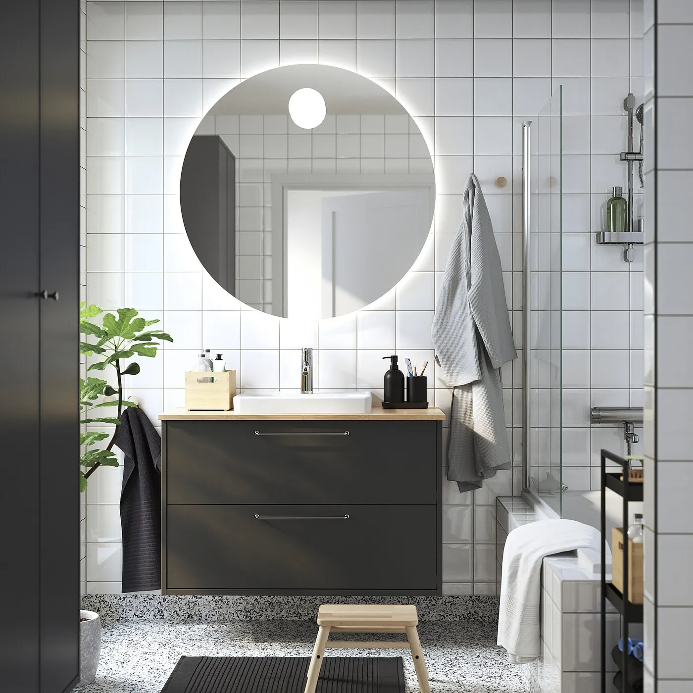 Сочетайте с другими шкафами серии HAVBÄCK, чтобы создать единое решение для ванной комнаты, подходящее вашему пространству и потребностям.